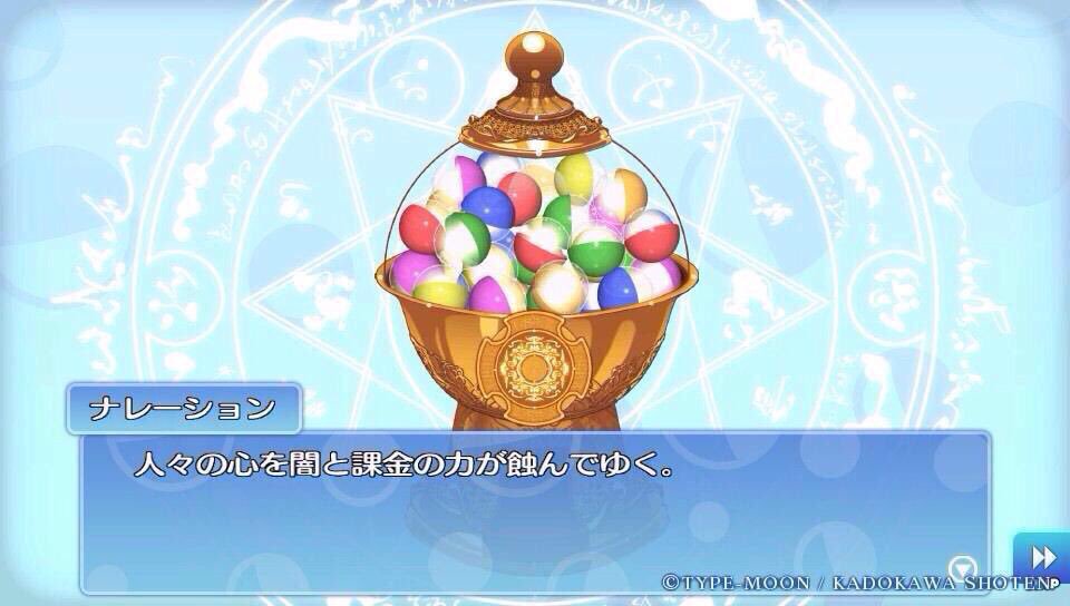 そういやキャッチコピーには「命よりも大事な聖晶石を使ってサーヴァントを捕まえよう」みたいなのもあったな。