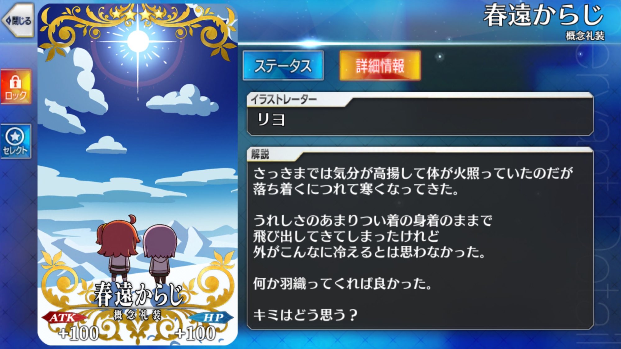 最終再臨イラスト、霊衣開放イラストは実装から2週間は貼らないでください。
