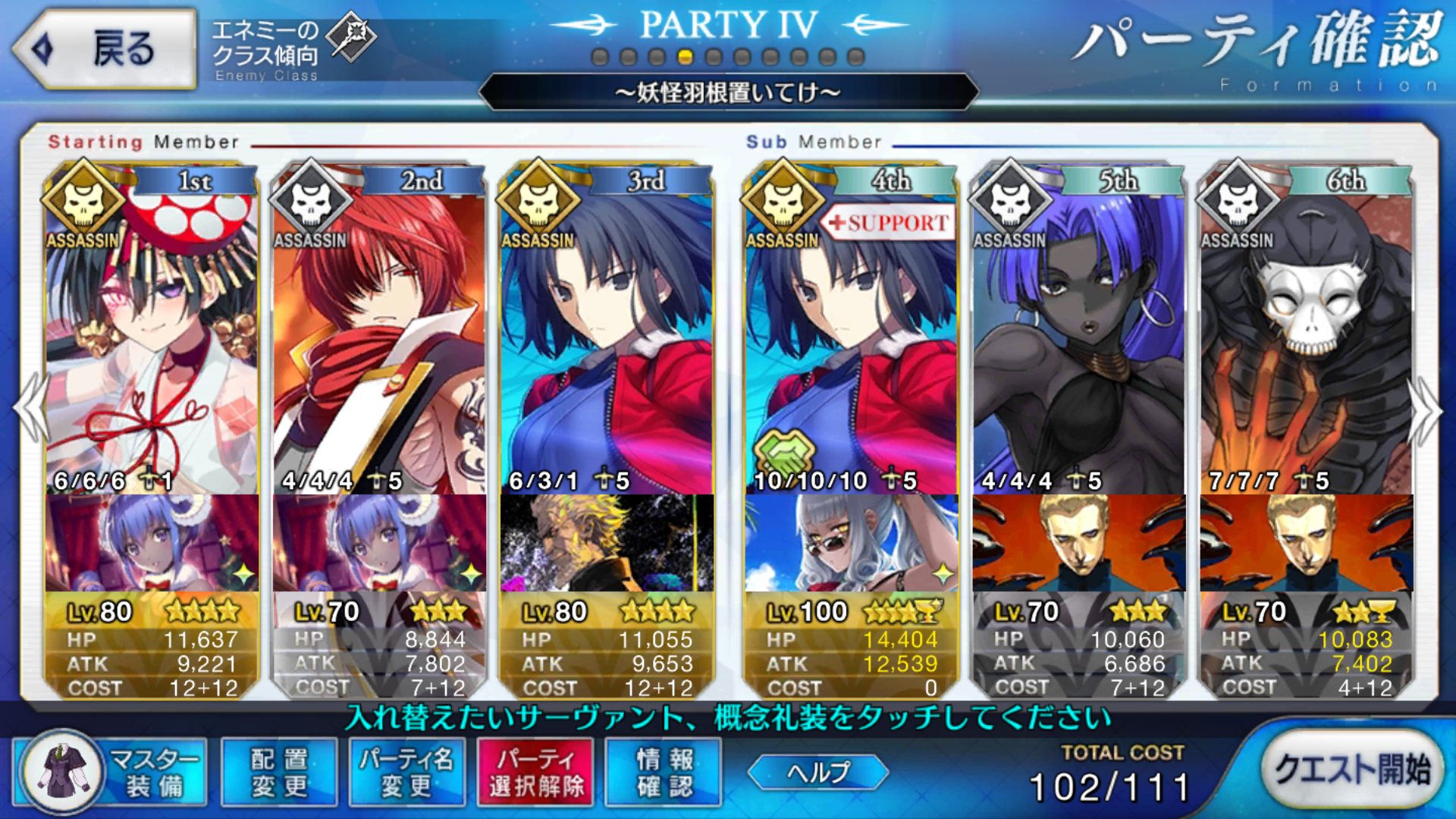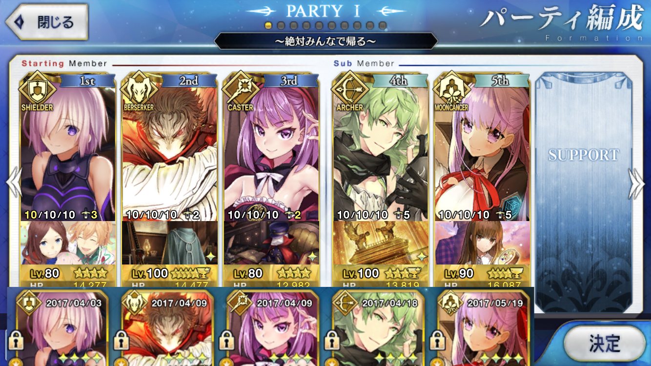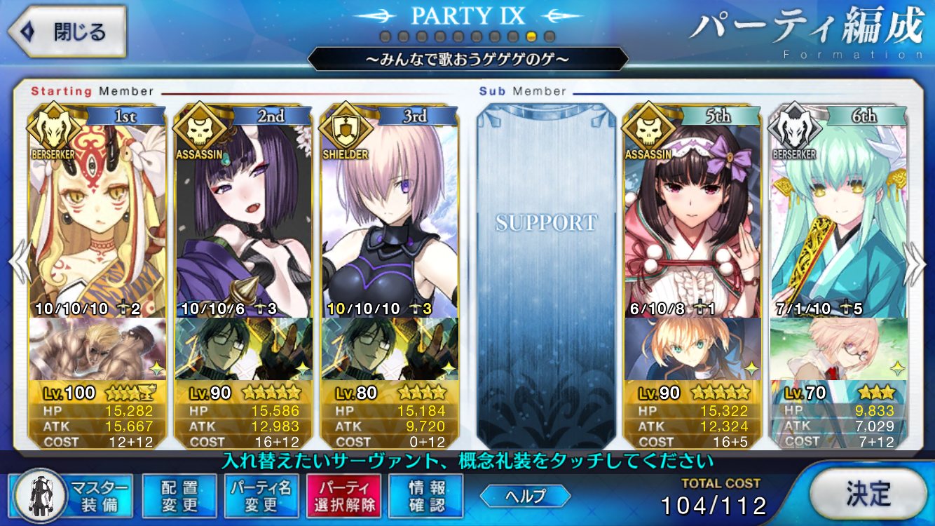 俺は好機が1枚足りなくて、今後復刻されない限りは凸できなくなってしまった俺が他人の編成見て「は?何やってんだコイツ」ってなるのは敵がキャスターだけなのにパーティーにアサシンしか居ない時ですかね…