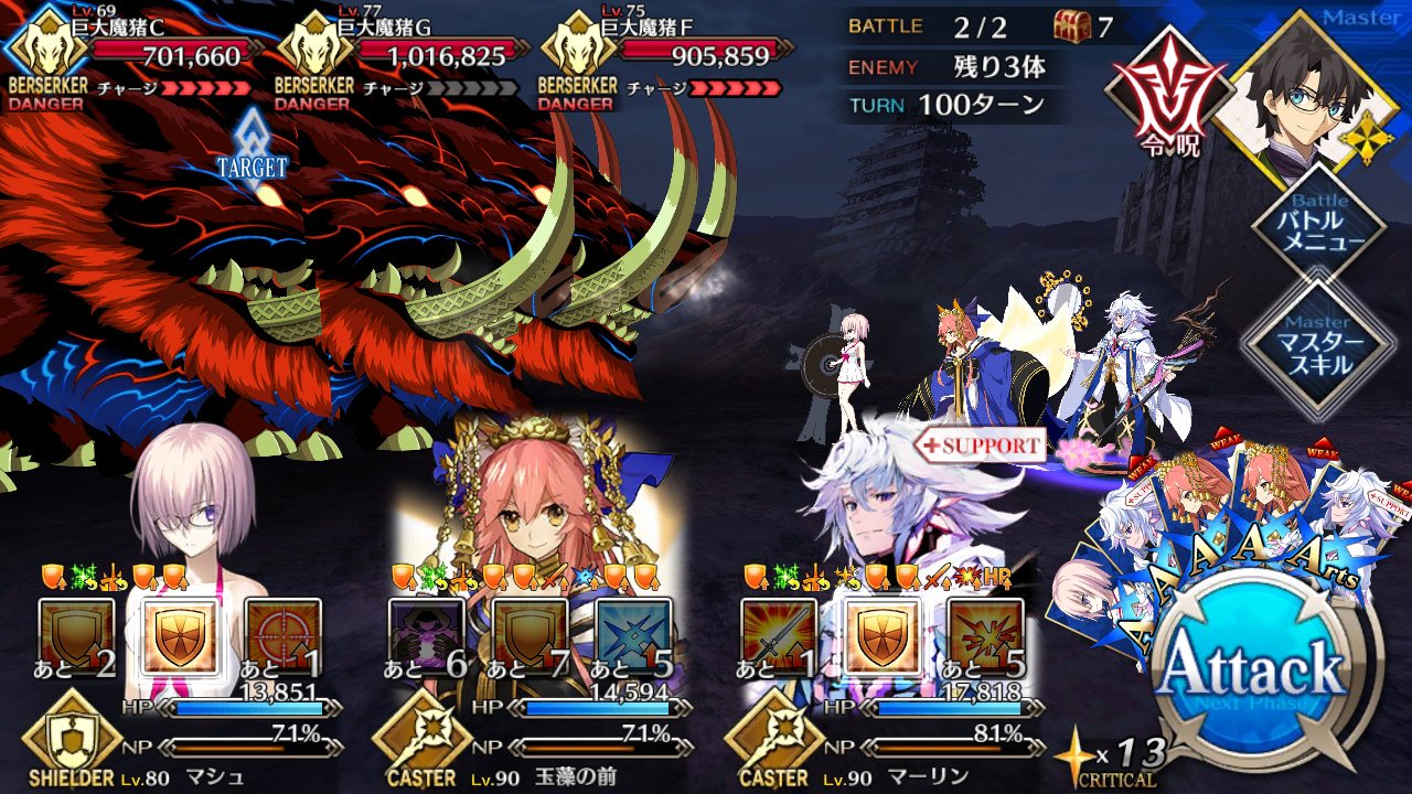 あれ、おかしいな、俺狂化スキルは持ち合わせて無いはず......とりあえず火薬3ターン周回作ったけど、ニトクリスがあまりにも即死しまくるせいでペンちゃんが活躍できない不具合が発生してる