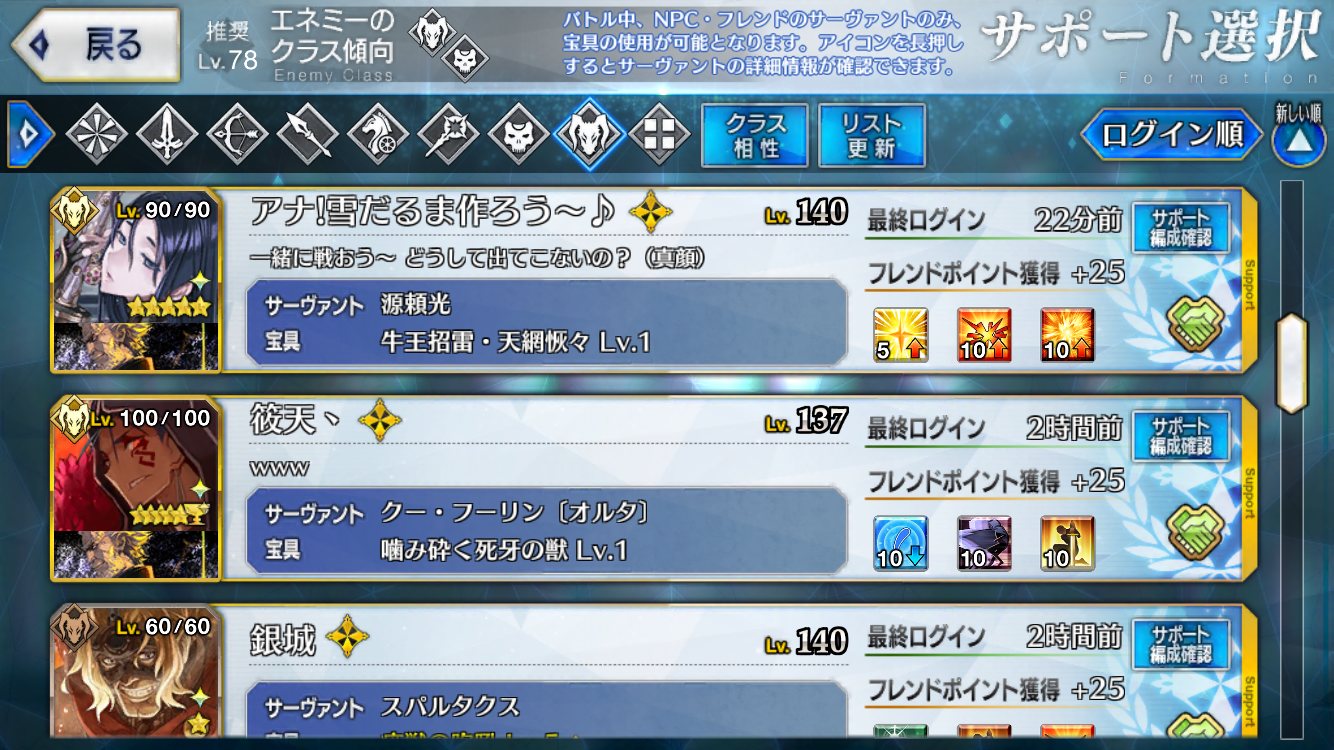 結局は何だかんだで色々なサーヴァント使ってるという現実よ昔は周回ぐらいしかすることなかったから周回に使えないなら雑魚みたいな時期もあったのにね