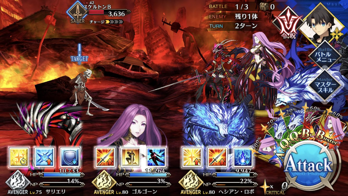今回は中盤くらいまでの敵構成がバサカ多めだったからフォーリナー2騎のおかげで大分楽だった