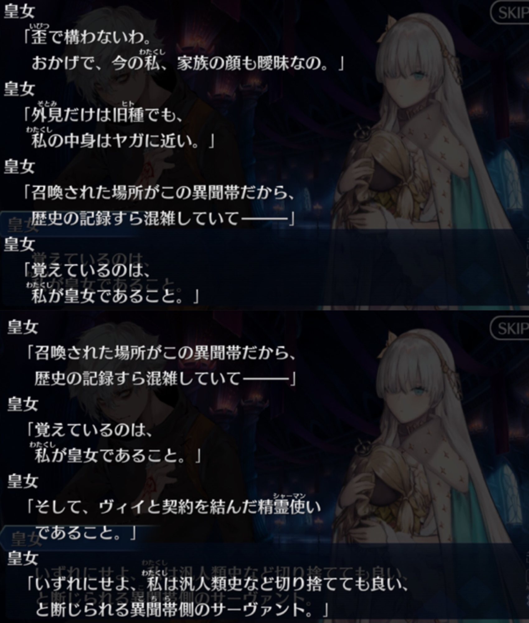 異聞帯は雷帝の時代でみんなヤガにされ、その後旧種は絶滅してるからあのロシアのアナスタシアという存在はいない。アナスタシア曰く、こっちで喚び出されたからか中身はヤガみたいになってるらしい。