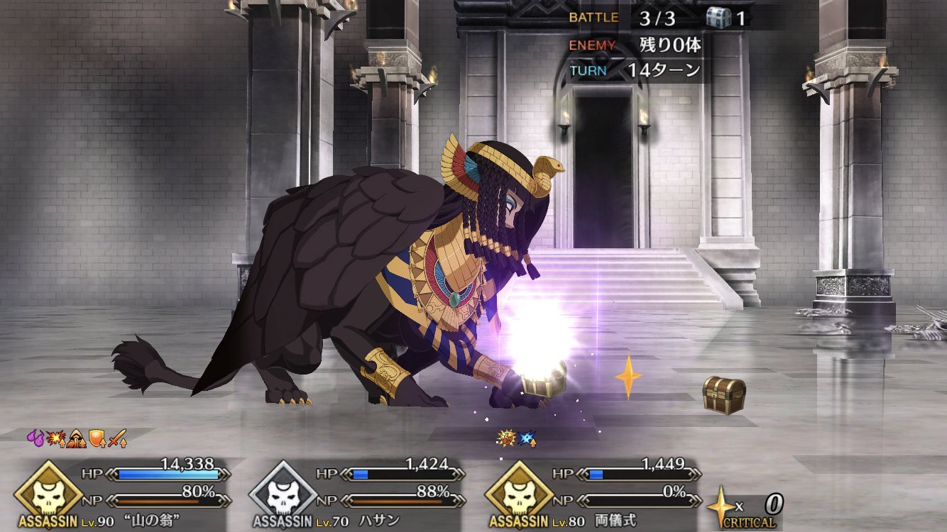 今年入って術ギルとニトクリス来るまで対殺はバベッジ、シェイクスピア、アーラシュさんっていう超強行軍だったよ