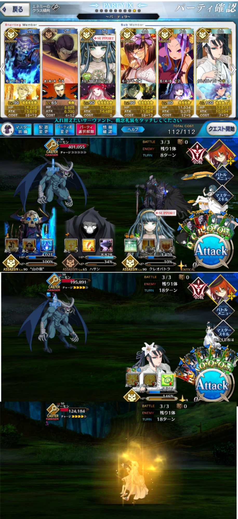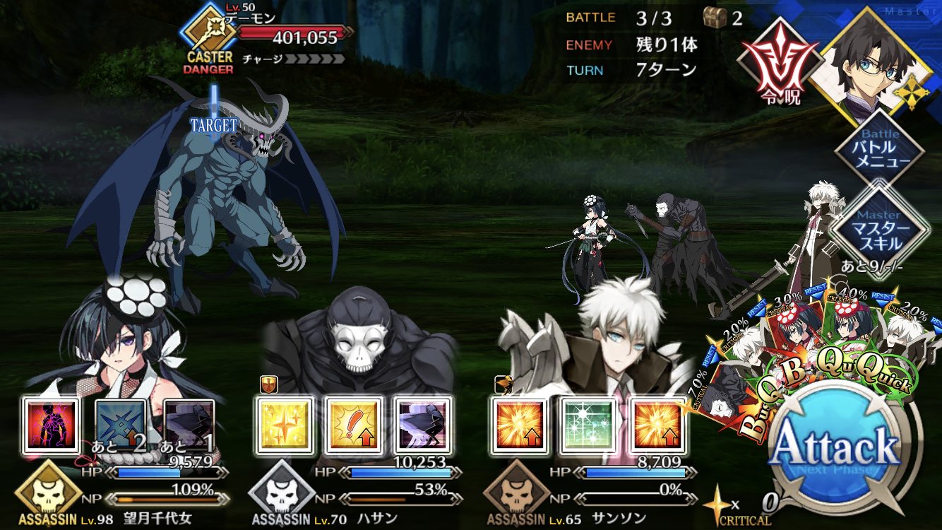 百重塔の高難易度の3ターンクリア動画で邪ンヌの宝具の強化無効で5回回避がつかなかったやつがあったぞい>>935