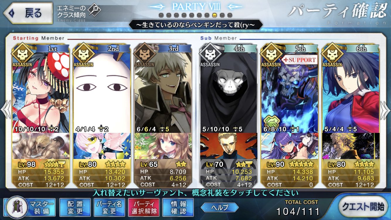 ウチは基本長居させないな。錦鯉で星を吐き出してバスターばら蒔いてNPはっつけたら退場する。>>896