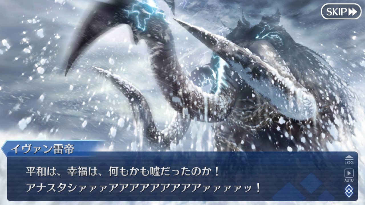 アナスタシアが何か強大なものに追われる=敵対ないし反目しているという暗喩じゃないかな。シナリオをやってない人にはどういうことだ!?となりクリア済み勢にはあーそういうことねとなる>>23