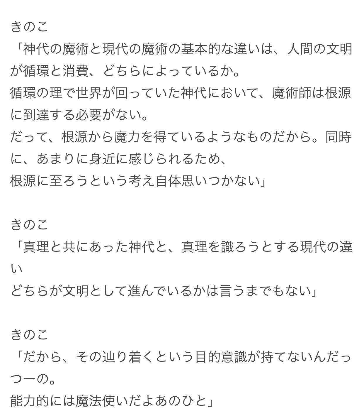 ・異聞帯の生存競争を画策、キリシュタリアは汎人類史に参加権は無いと語るが、コヤンスカヤかは、主人公のクリプターも目的の一つと思われるので、異星の神はカルデア陣営も参加者と考えている?(クリプターと意見不一致)