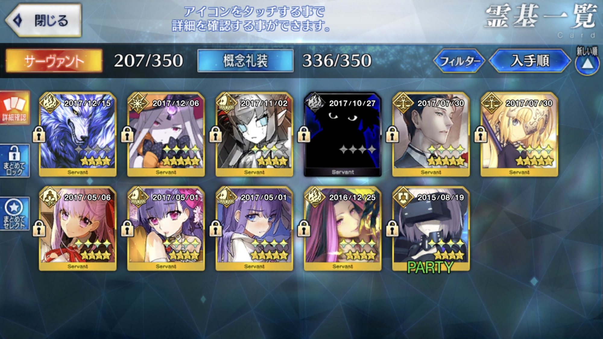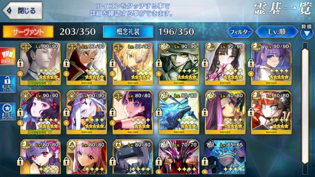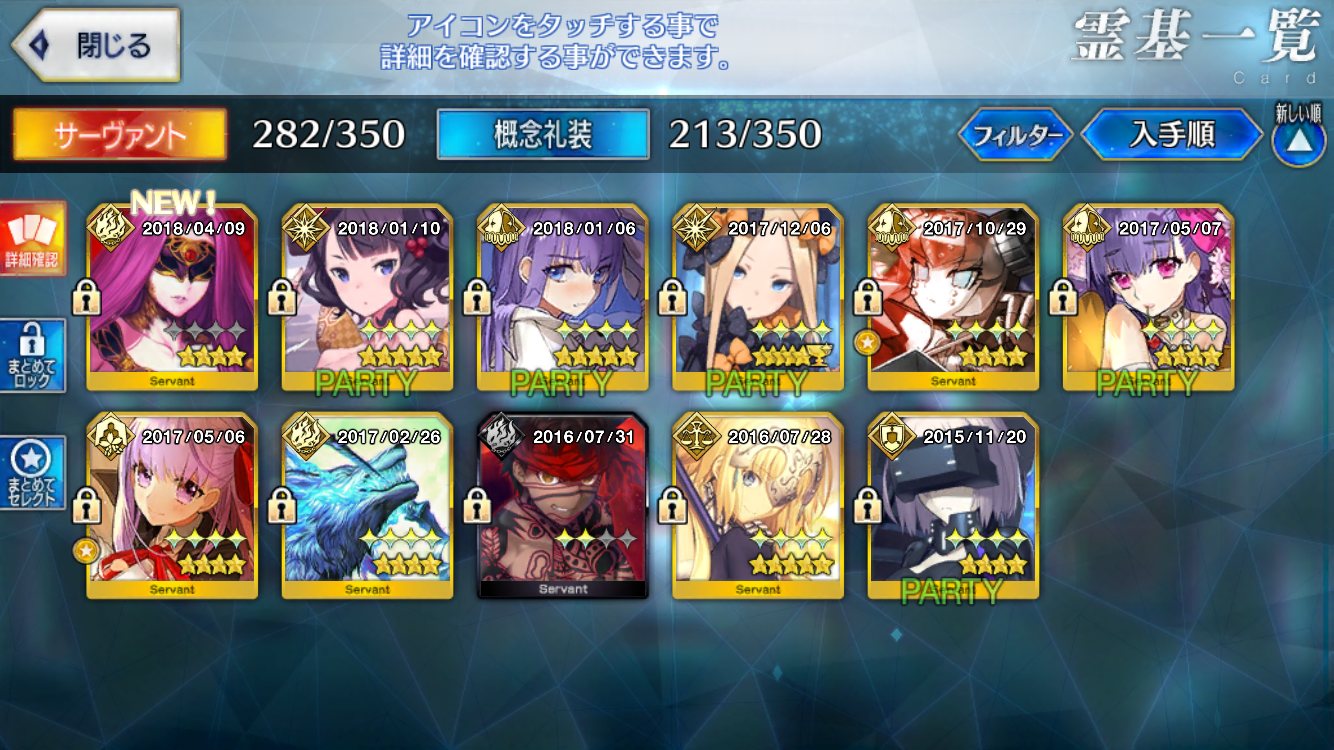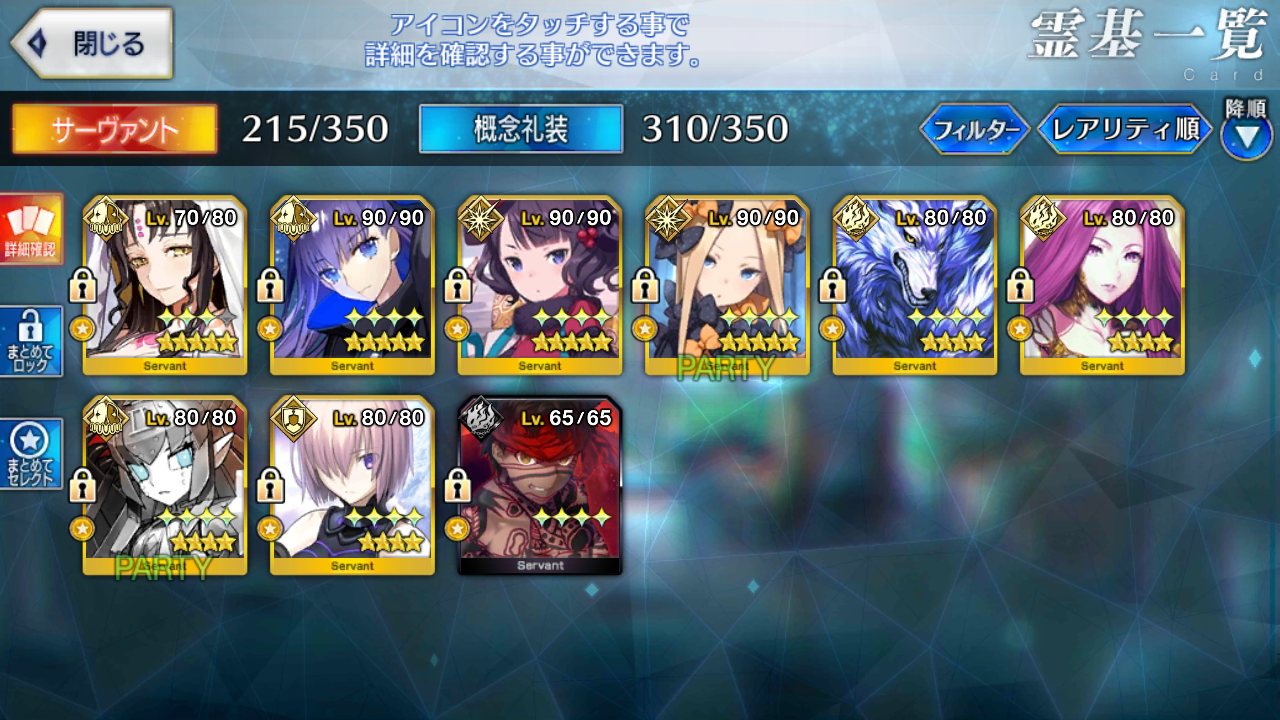 レオニダスに着けて試してみるかな、バスターバフ兼防御バフが出来たら強そうレベル1絆ゲオさんとか欲しくてたまらないんだが見つからないんだよなぁ。