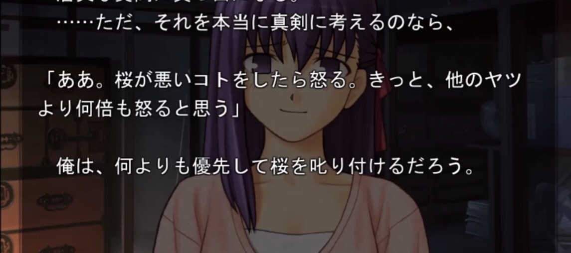 SSF…と言いたい所だが、正直序盤で士郎と桜がどれだけ藤ねえの存在に救われてるか伝わってきてやばかった。ネタとかじゃなくて、大河が日常にいる安心感って凄いな