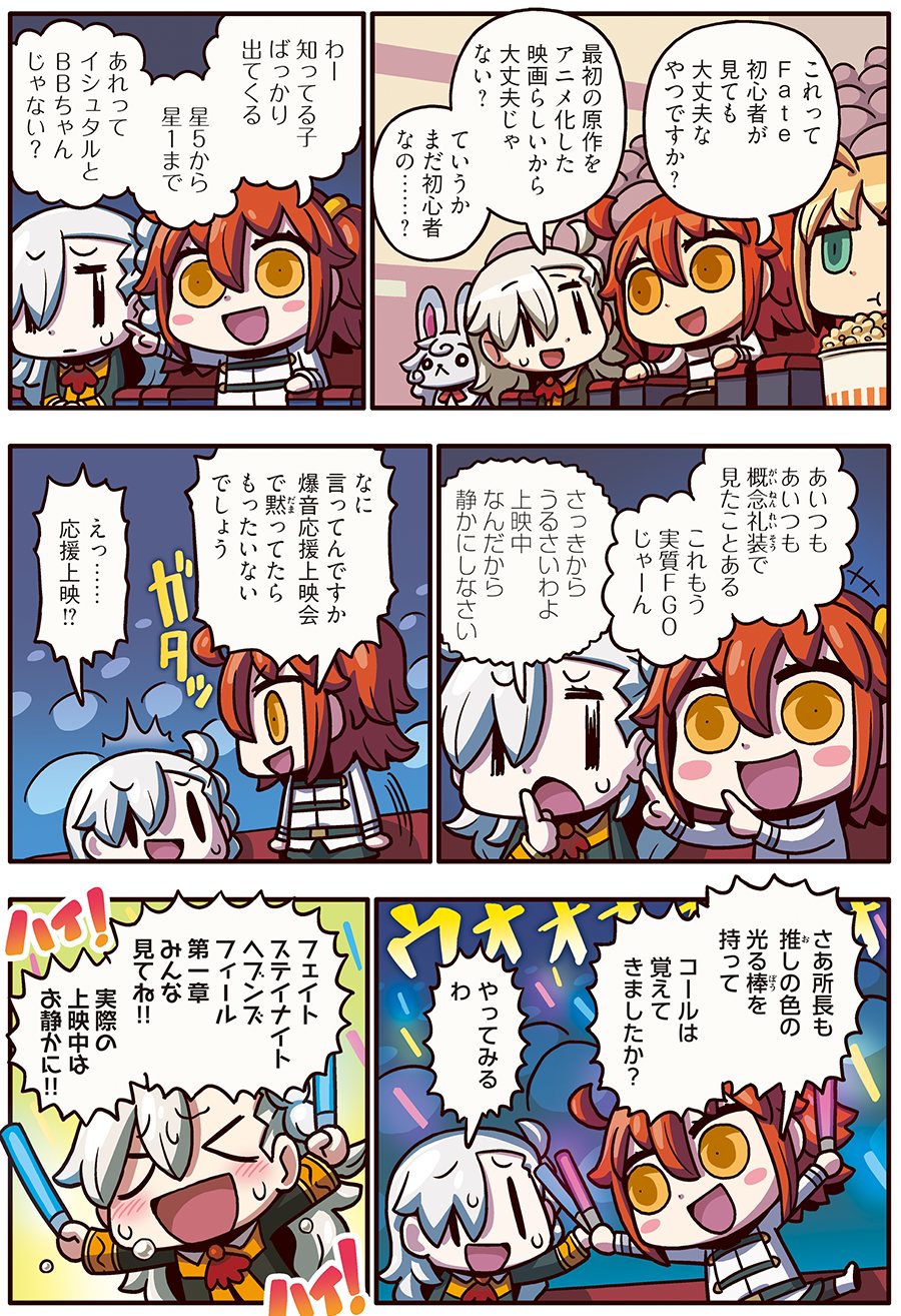 周りにスマホ横にしていじってる人いっぱいいたけど、多分FGO プレイヤーかな?舞台挨拶何時からだろ、間に合うかな…