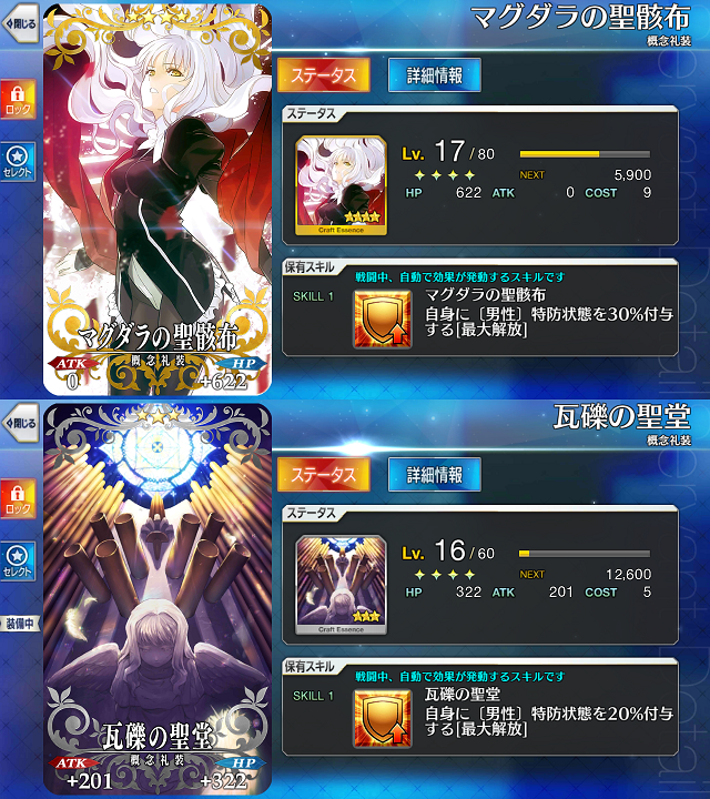前者はNP補助に、後者はきよひーやステンノ、マタハリ殿につけてます葦の海にはお世話になりました。