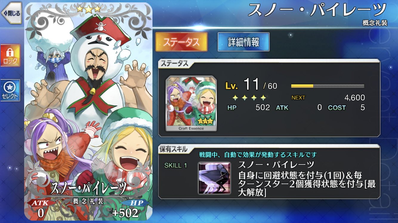 それよりも残り二つの効果の方が印象に残りやすいですね☆5礼装意外は五味です