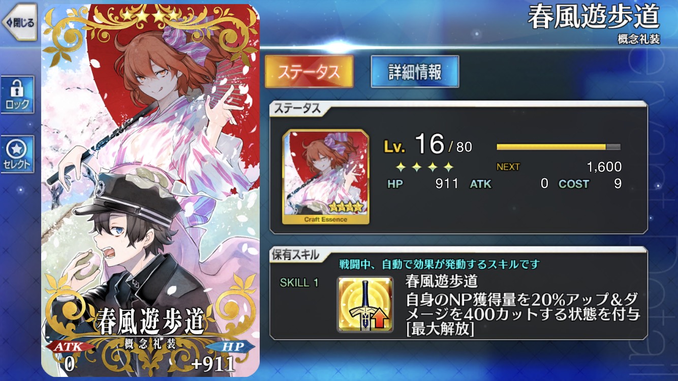 ☆4礼装って凸れば強いのに…って奴多いよな。早く凸りたい。新宿では嫁のキャットにゼッちゃん礼装付けてたわ