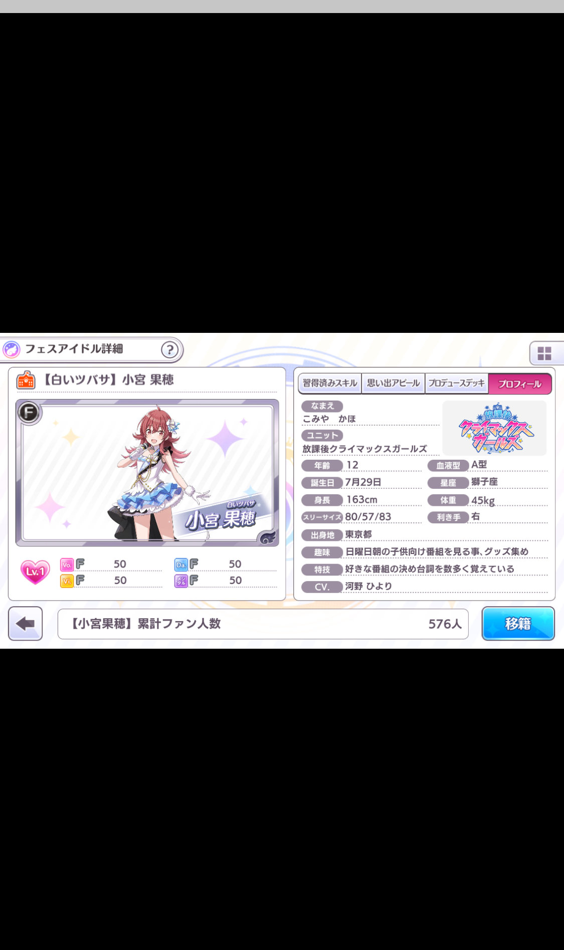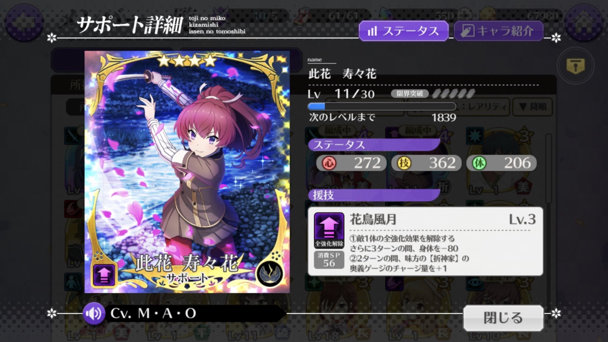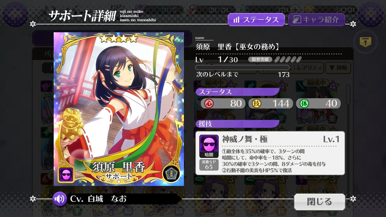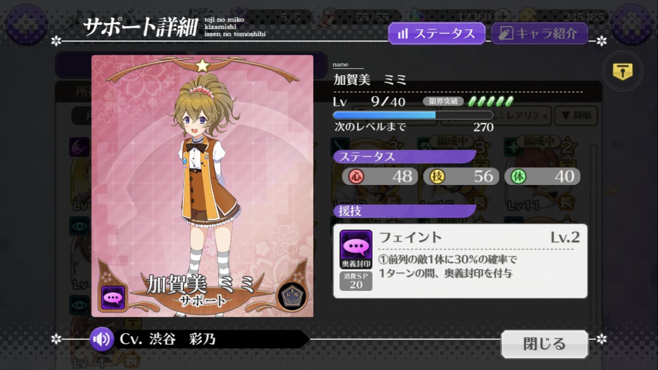 ありがとう。ボス戦用のパーティーは新田さんとアーニャとカタリナさんが頑張ってるから、どうしようかな。一アビがしぶりんの三アビの互換だから、エンジェルヘイロー周回に使うかな。>>914