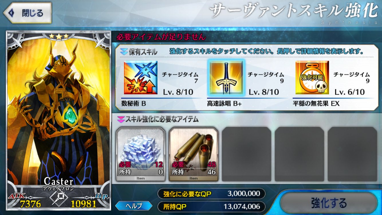 スキルマなんて新素材じゃなきゃヘーキヘーキ(なお在庫とQP)