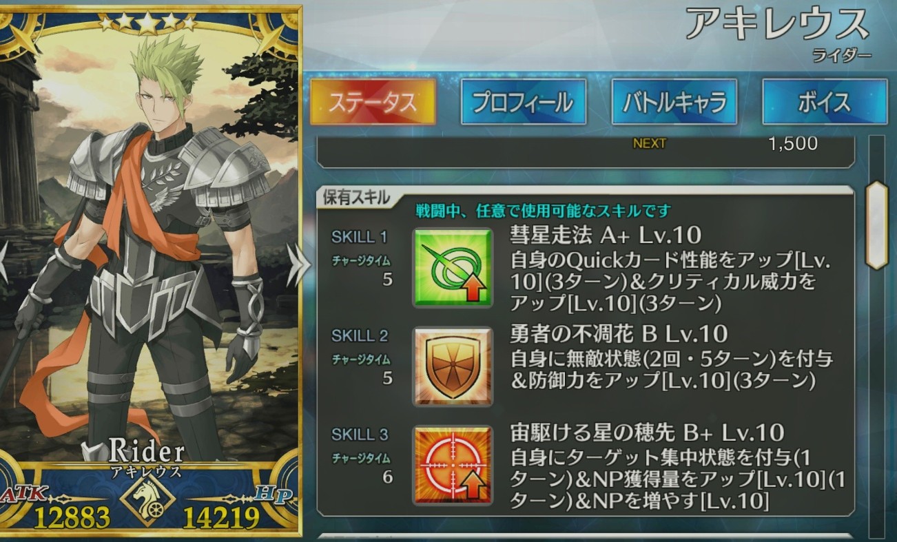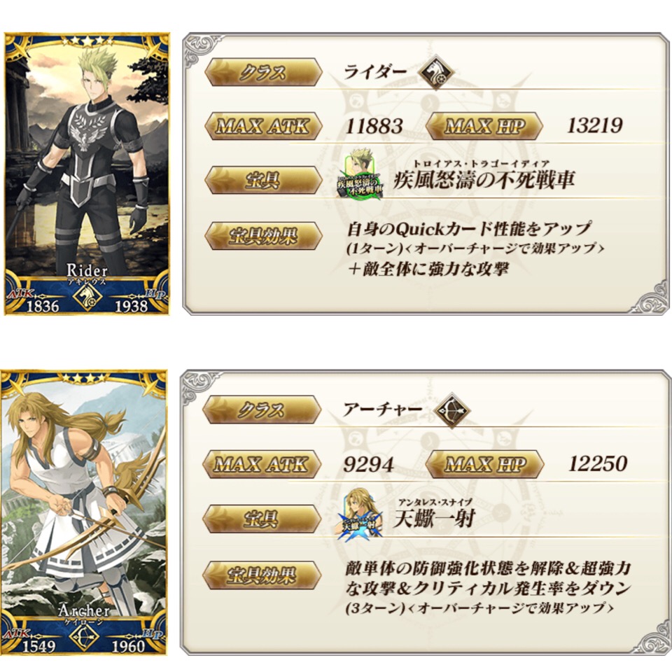 アキレウスの宝具レベルが1足りないような…?ツイッターで見たけど、アキレウスって、なんか特徴的な効果のスキルとか宝具とかはないんだな。