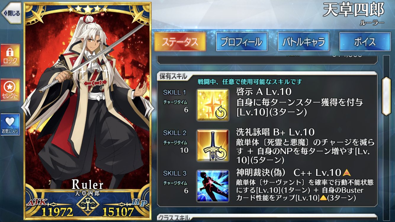 ジャンヌへの台詞はエグいこと言うくせに、天草へは二つもボイスあるからな