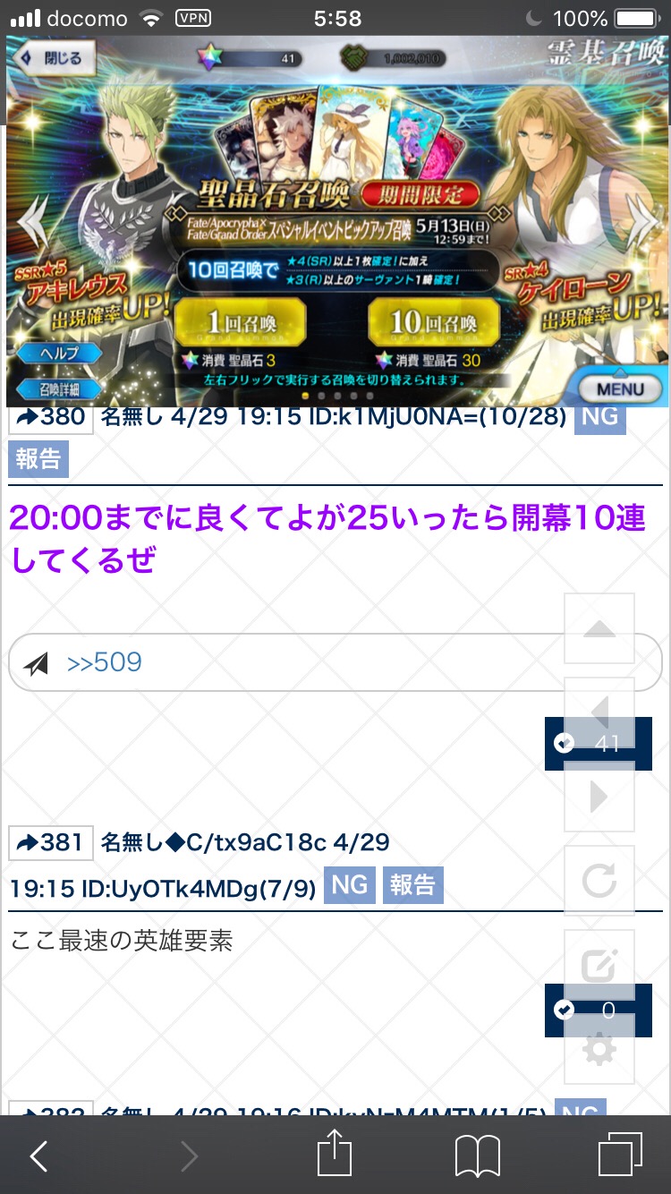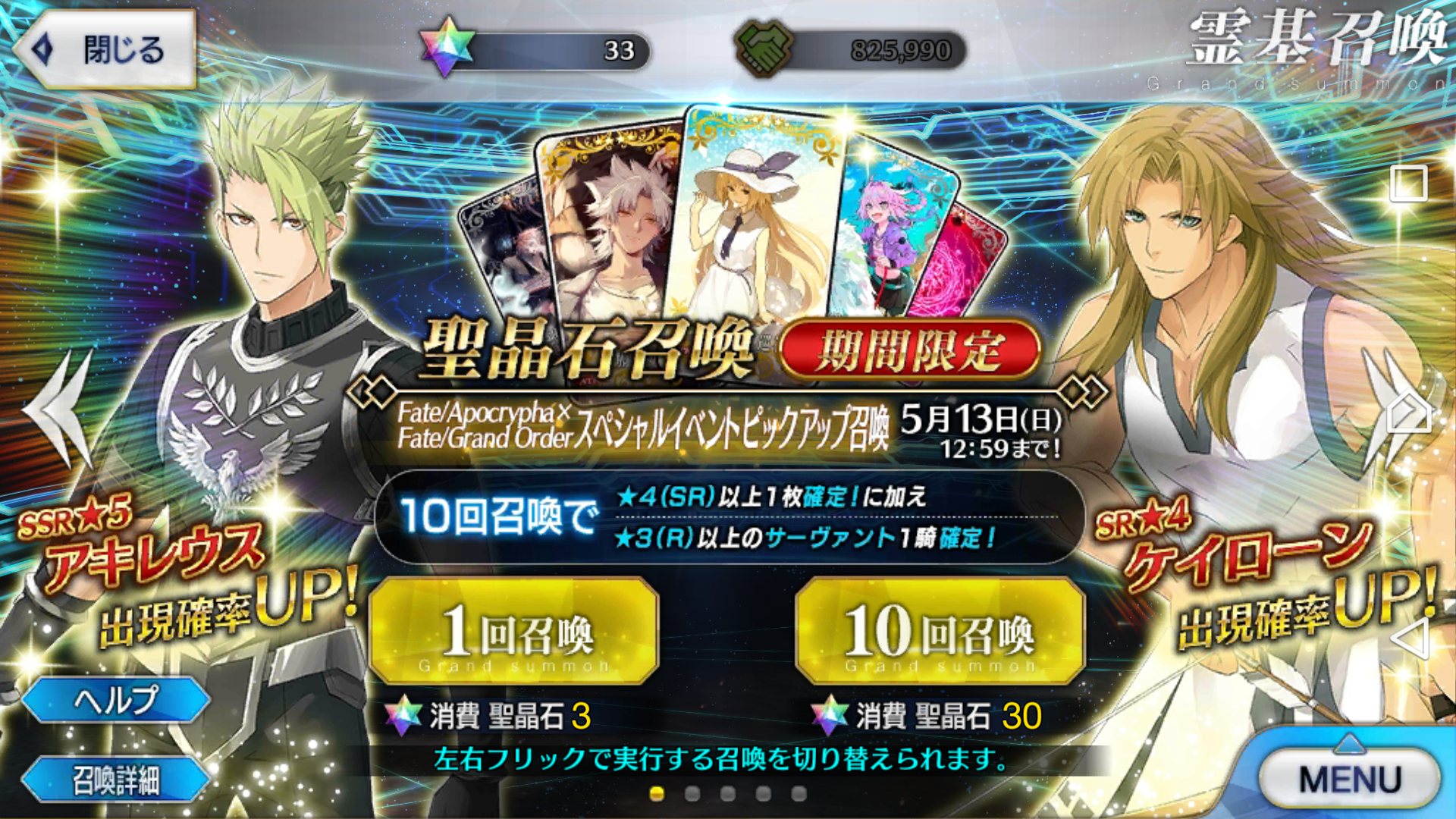 アキレウスとケイローン来い……!って念じまくると当たるゾイ。物欲センサーをごまかせ。7時になった途端めっちゃ重たくなって笑う