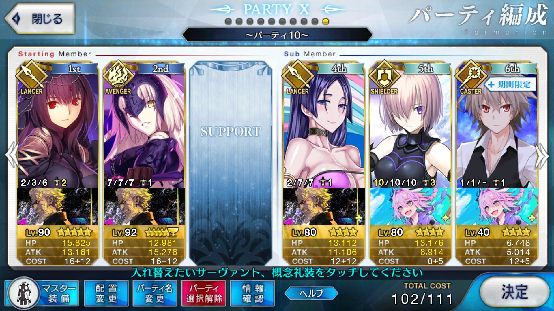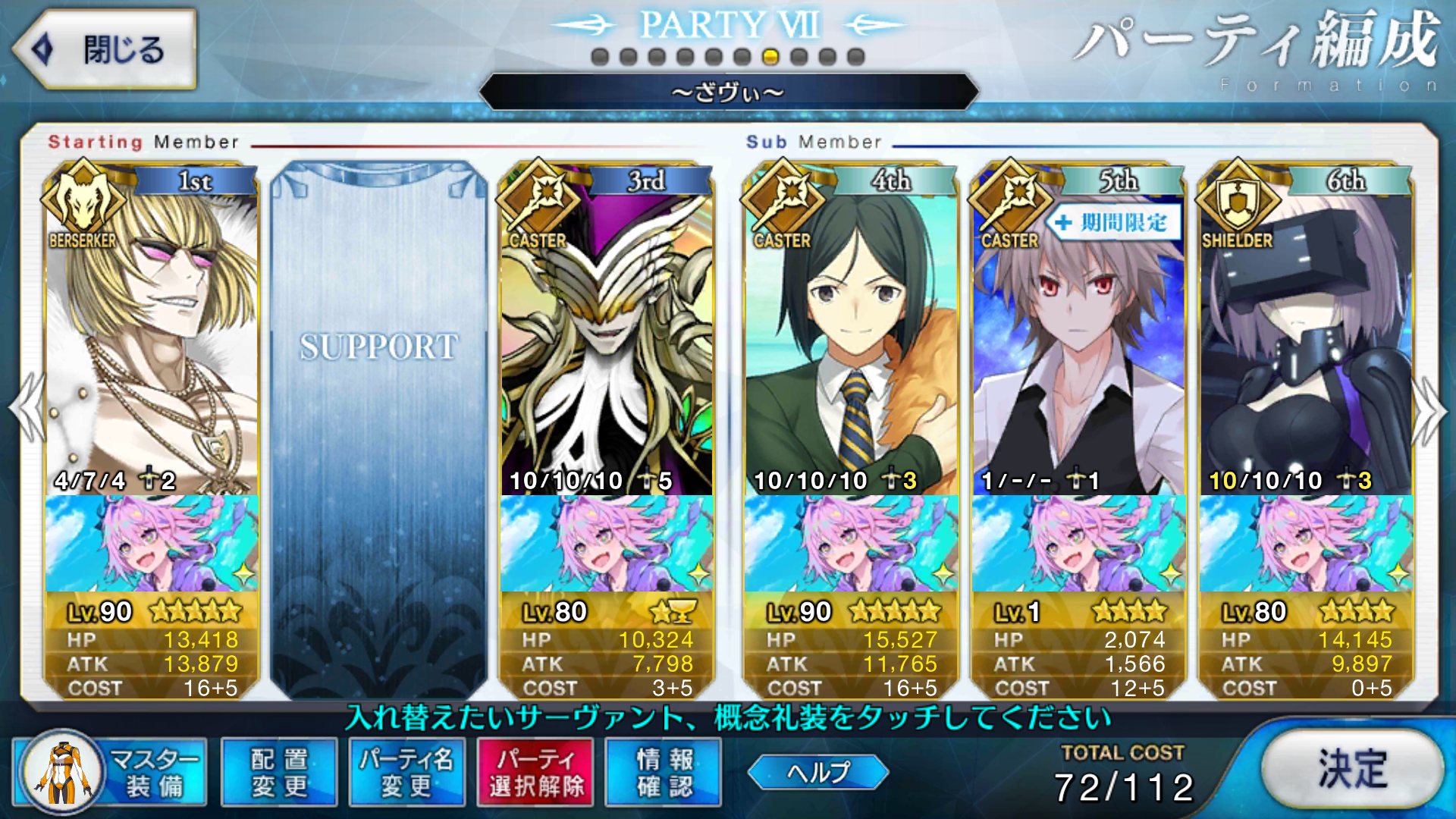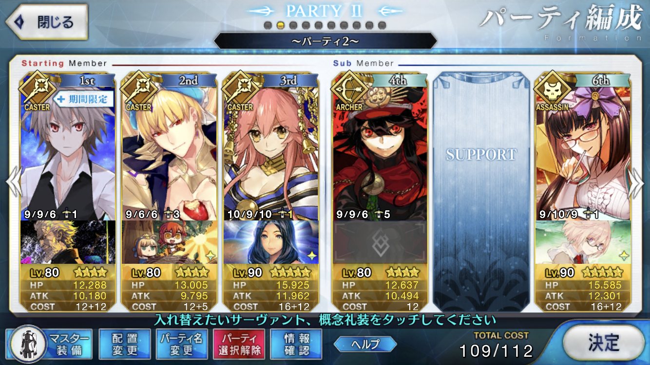 どっちみち思い出は多い方がイイシサ。ちょっと質問。イベント中、サポート欄のアストルフォ(10/6/10)に何の礼装持たせたらいいかな?