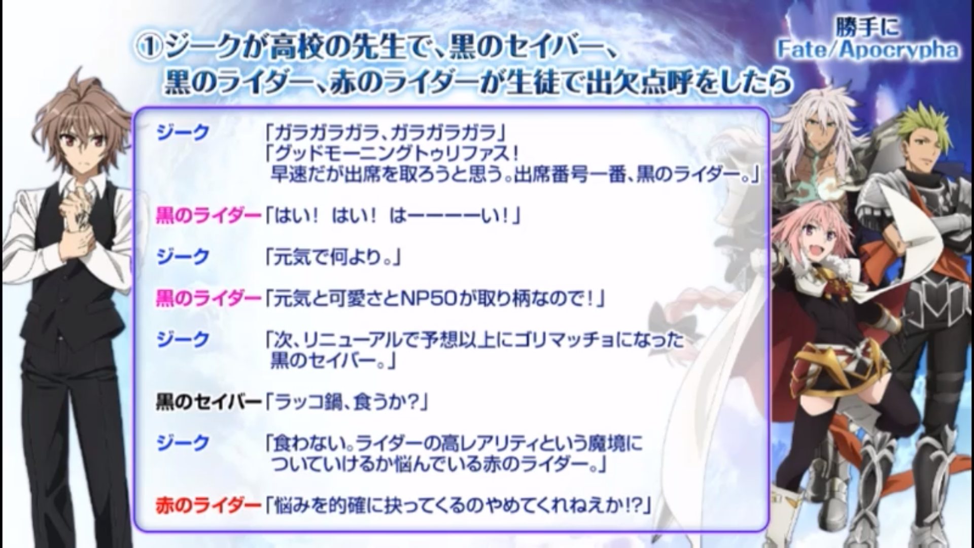 あれでジャンヌからジーク君へ何もなかったら普通に俺は御臨終である今回もやっぱり黒幕は天草なんでしょう?(風評被害)
