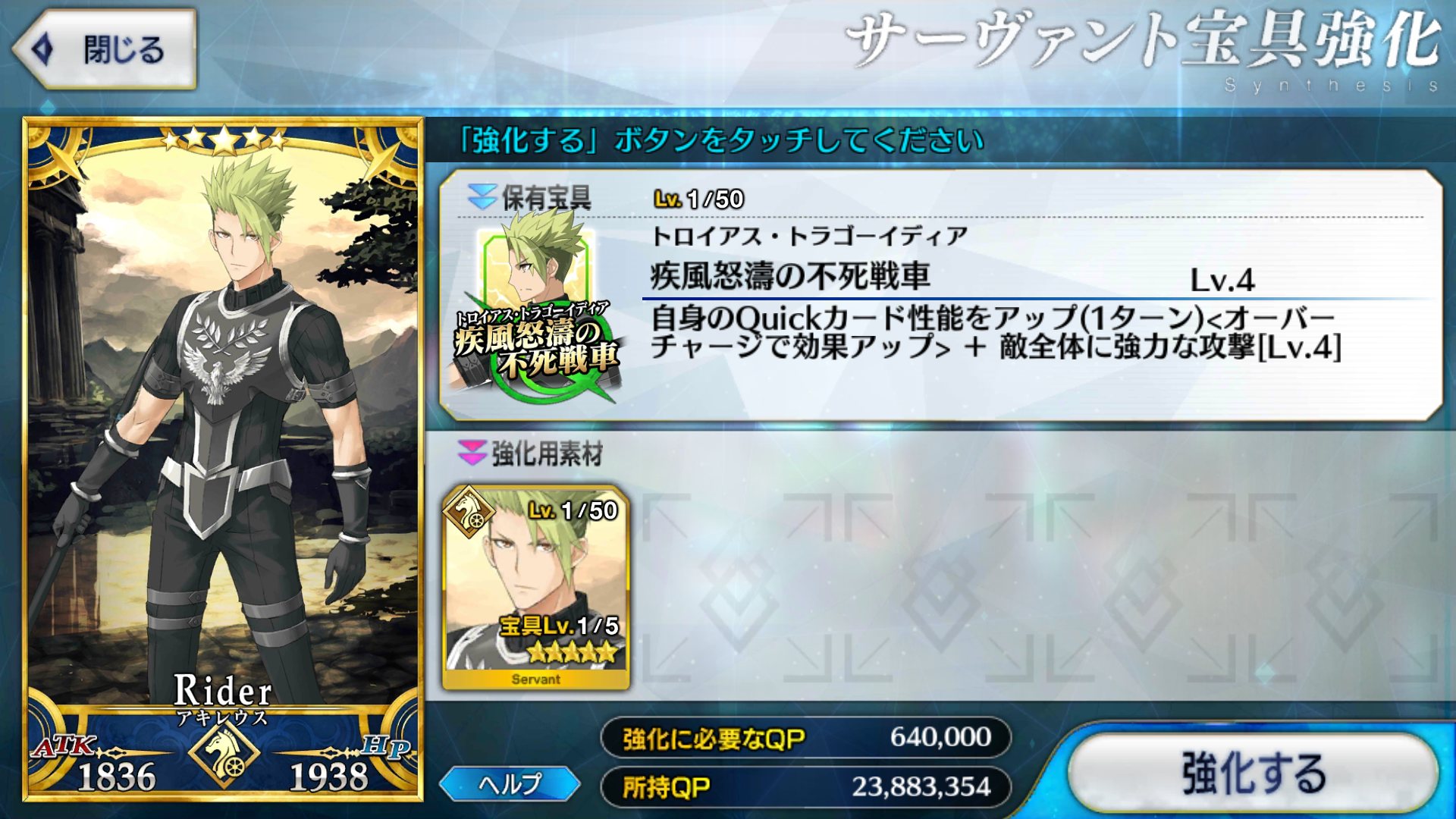 当たらずの陣!アキレウスを表すなら、フルアーマシュを☆5にしてライダーになった代わりにクイックに特化させ更に宝具を攻撃にした感じか。