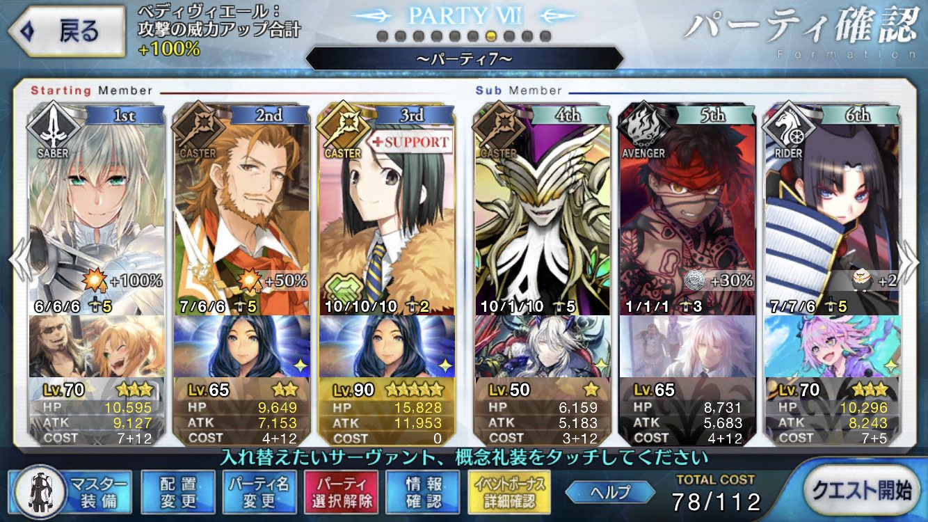ムサシレイアの組み合わせは当カルデアでは鉄板でサポート欄は後ろに持っていくのを忘れていただけなのだ……ペン姐さん周回でクッソ強いよな