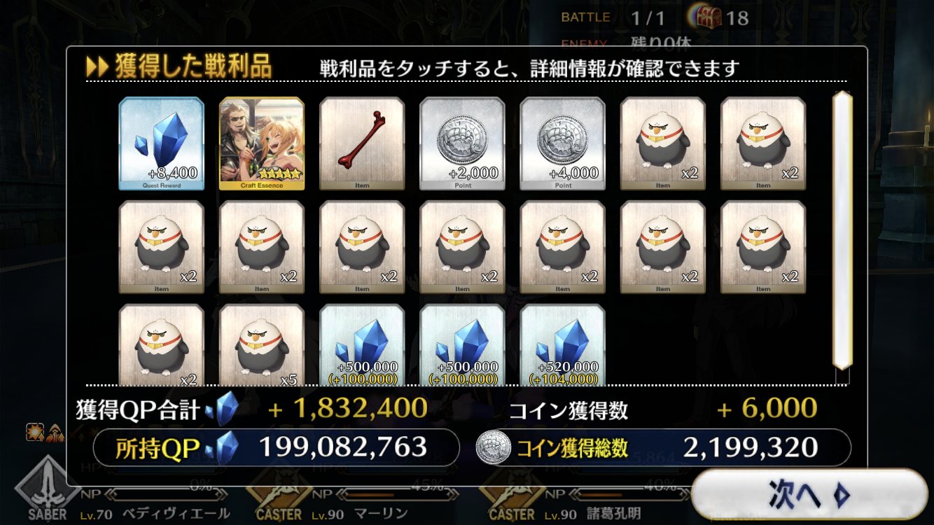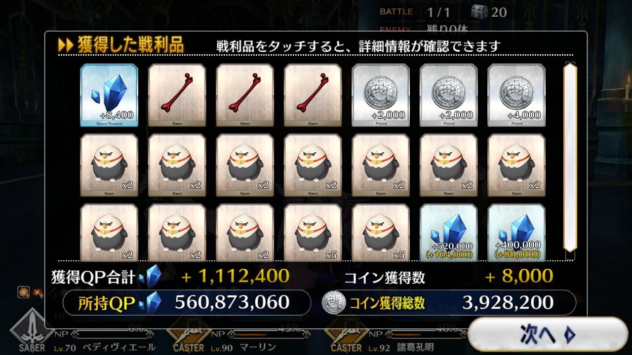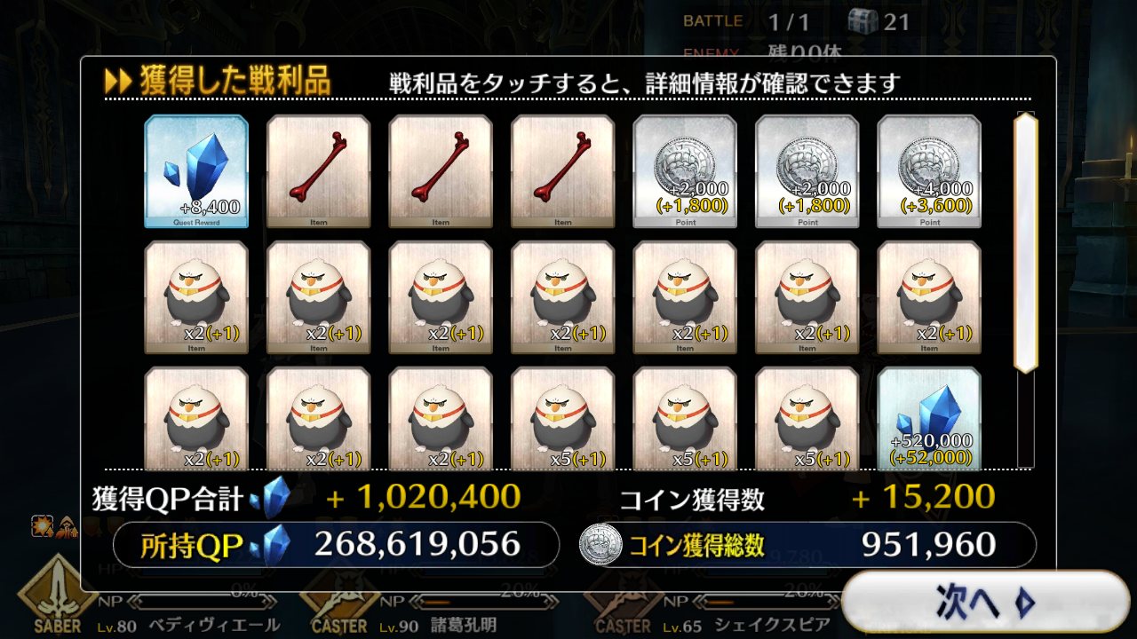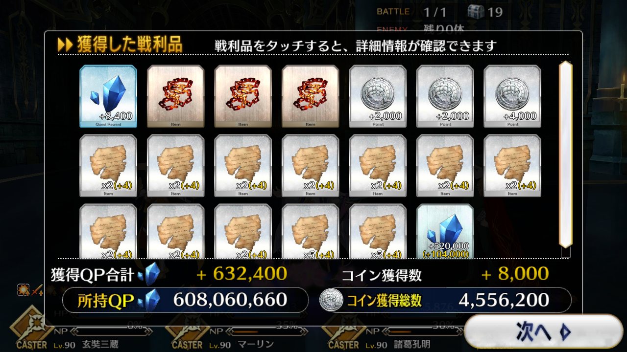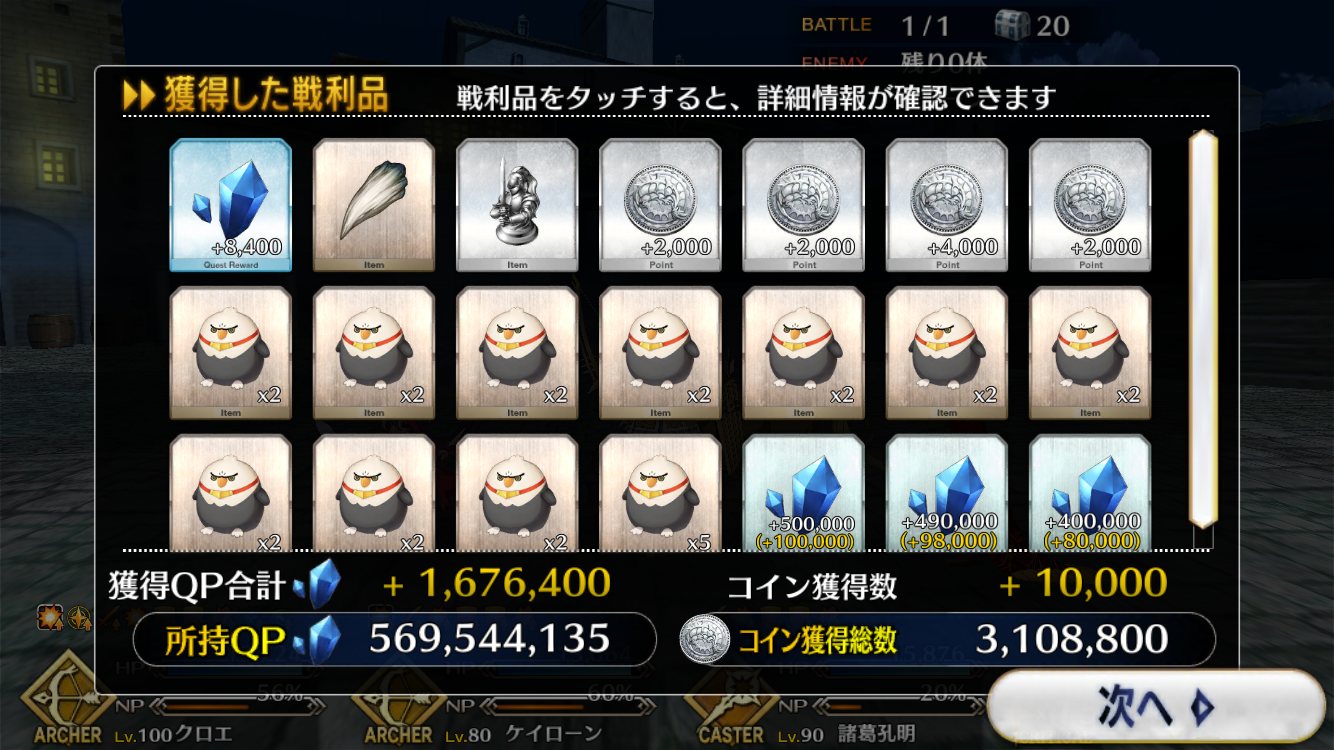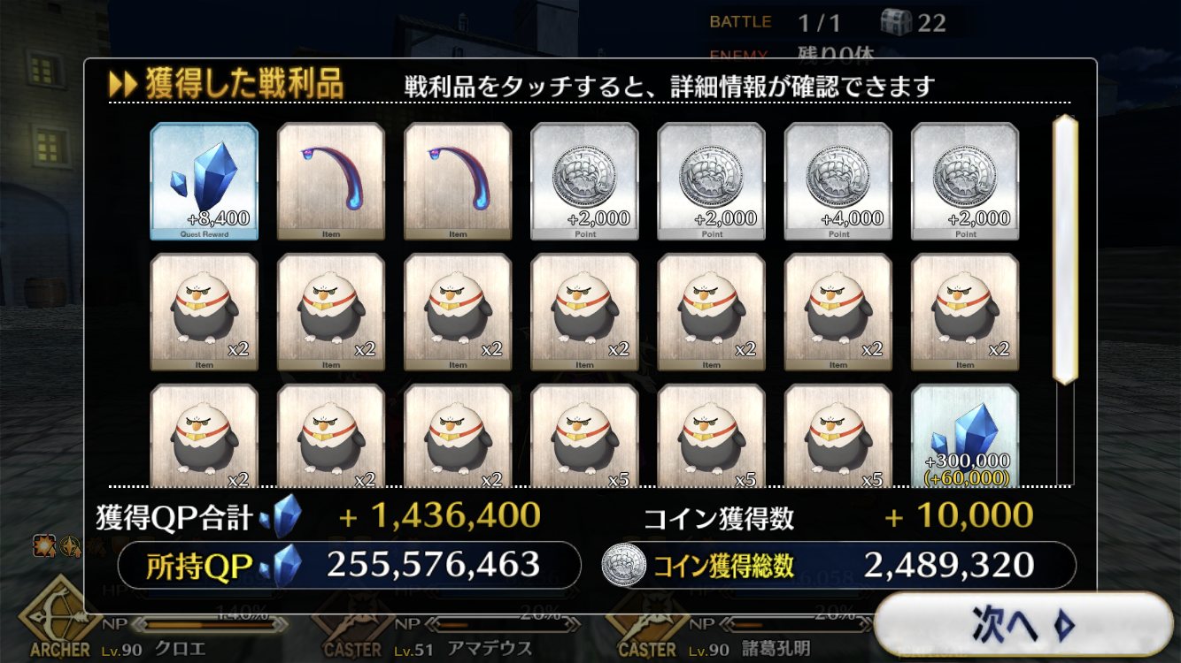 今回でQPはインフレするからこれが終わったら素材集めのフリクエ地獄になる訳だ