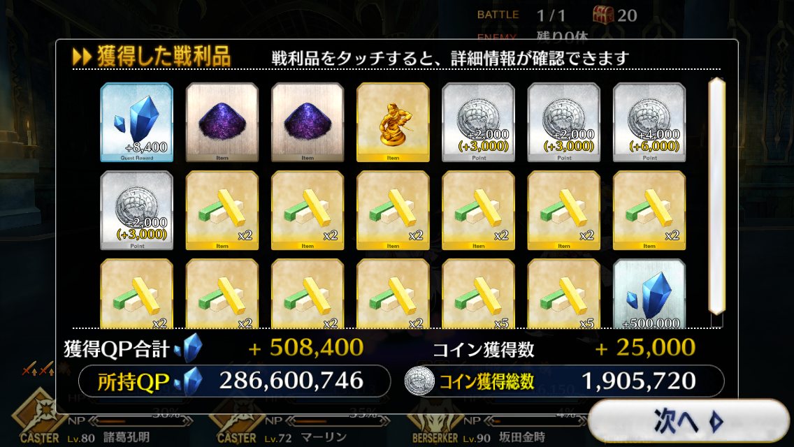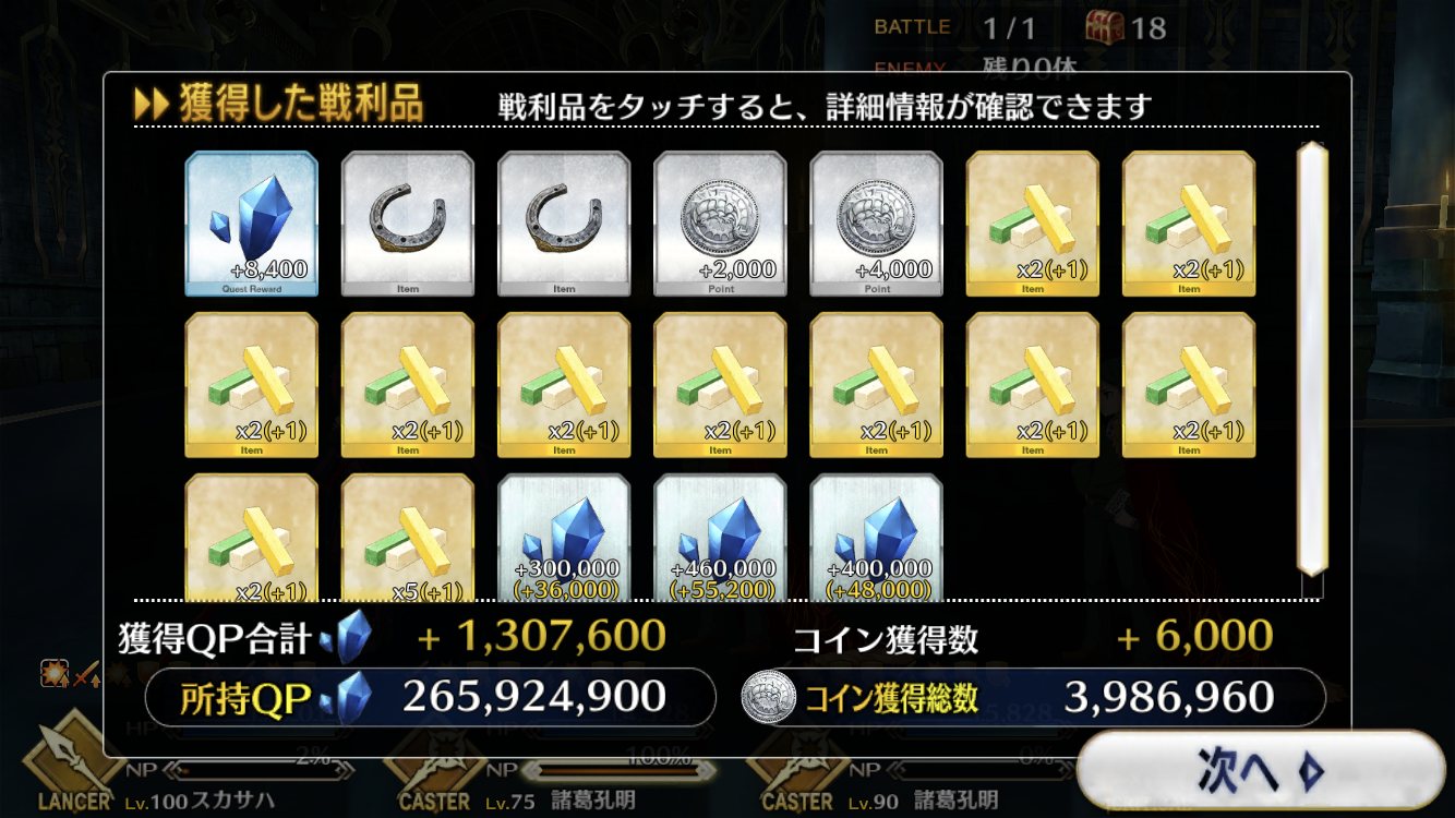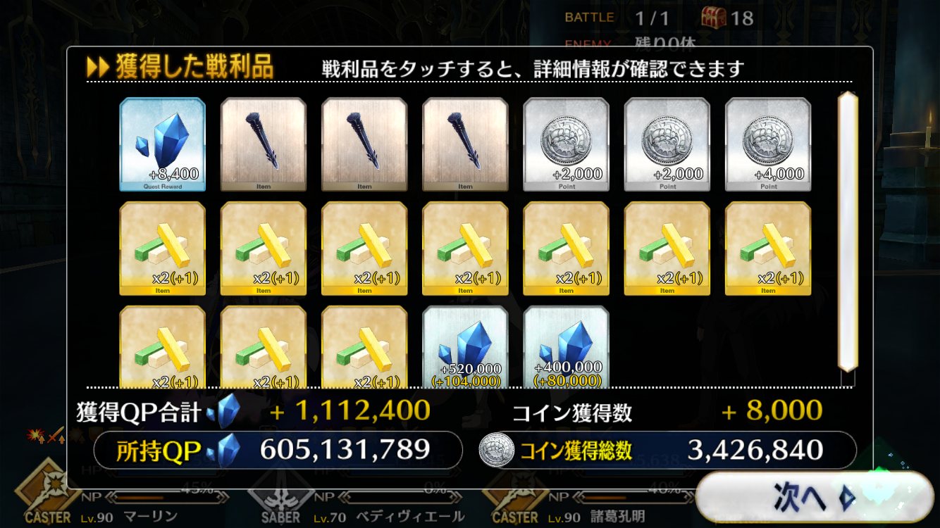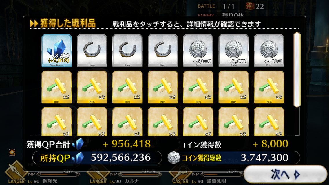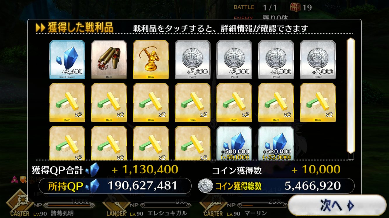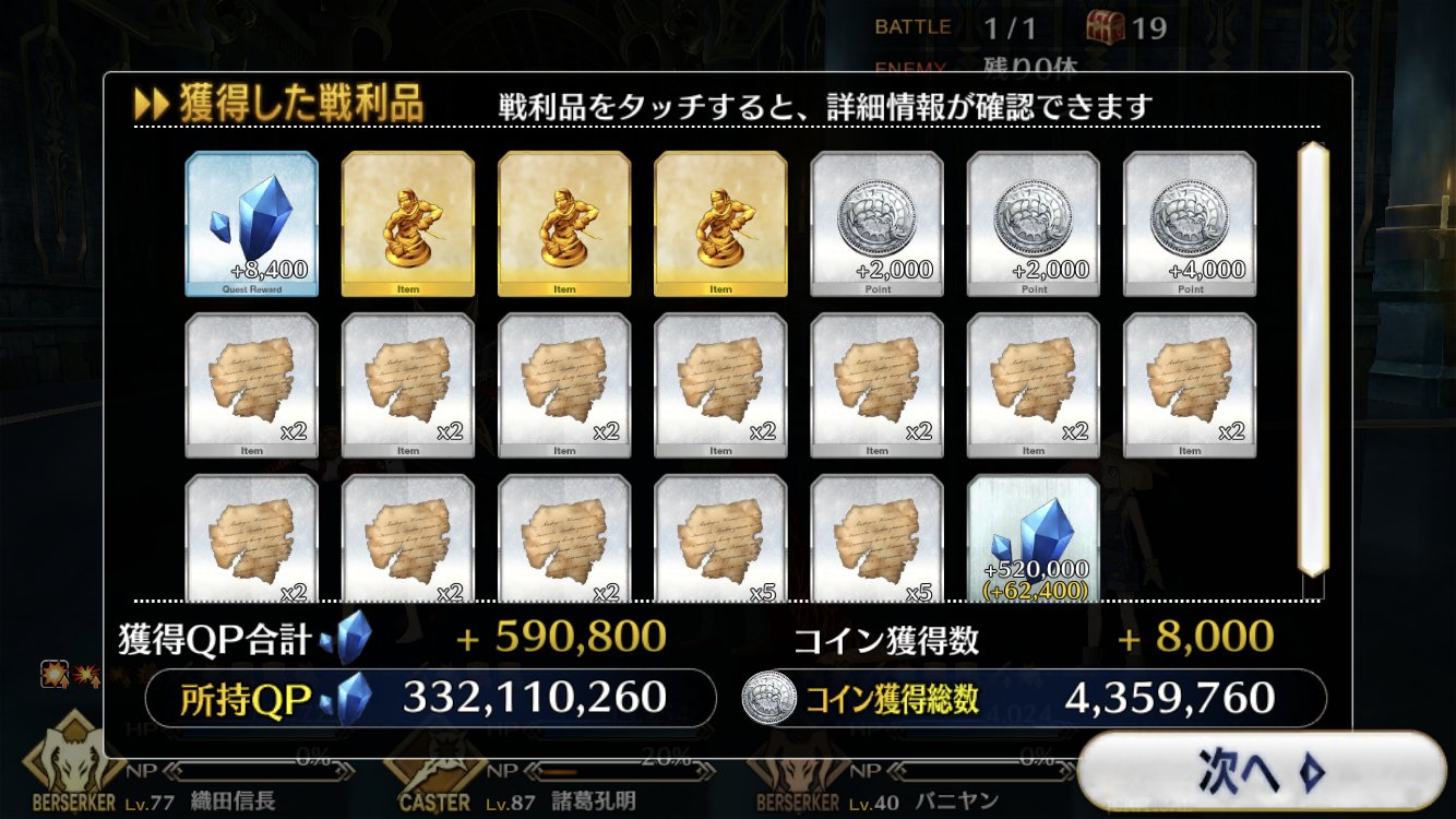 今回でQPはインフレするからこれが終わったら素材集めのフリクエ地獄になる訳だ