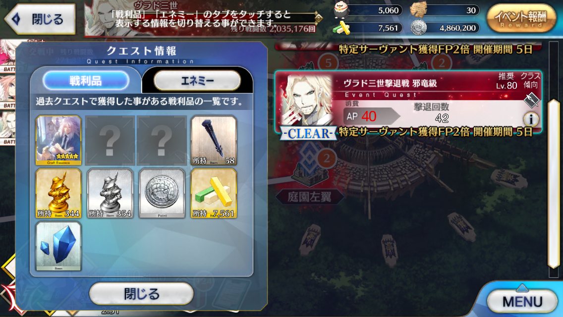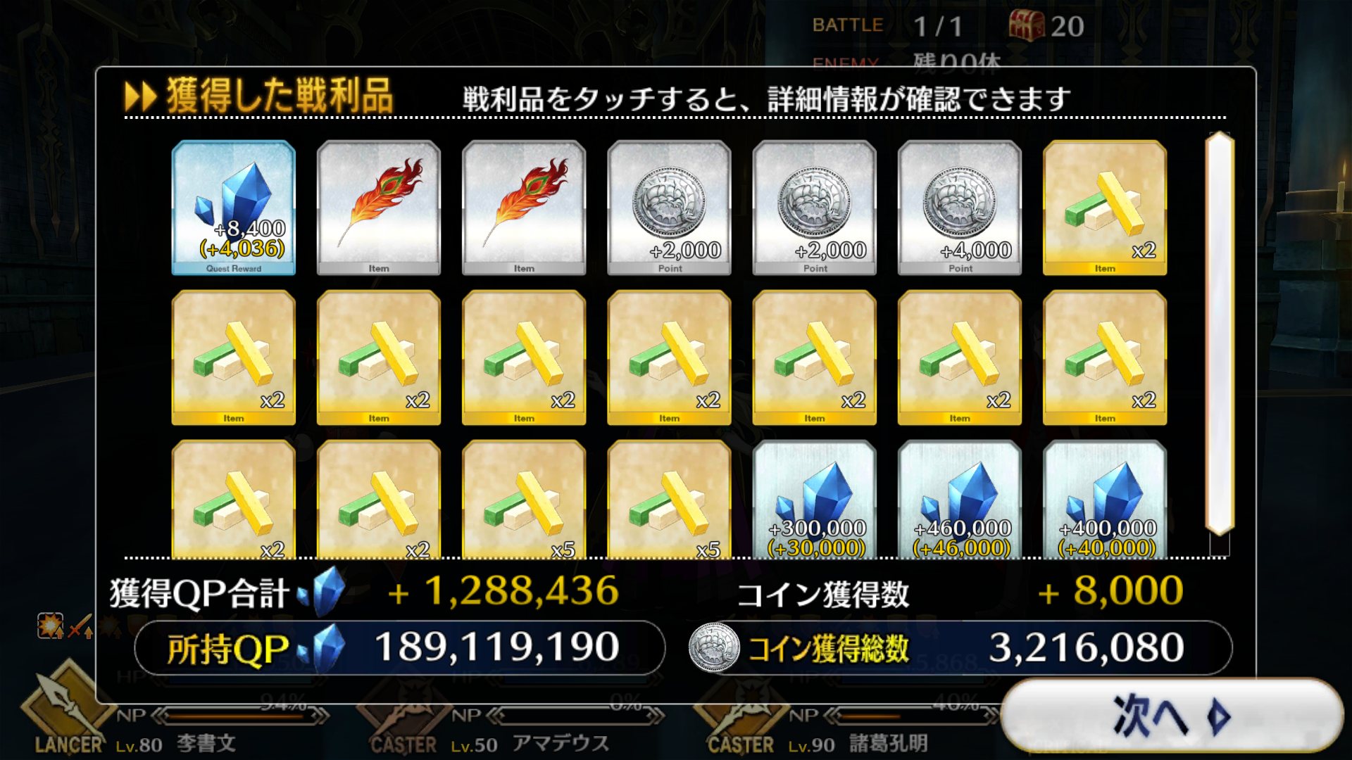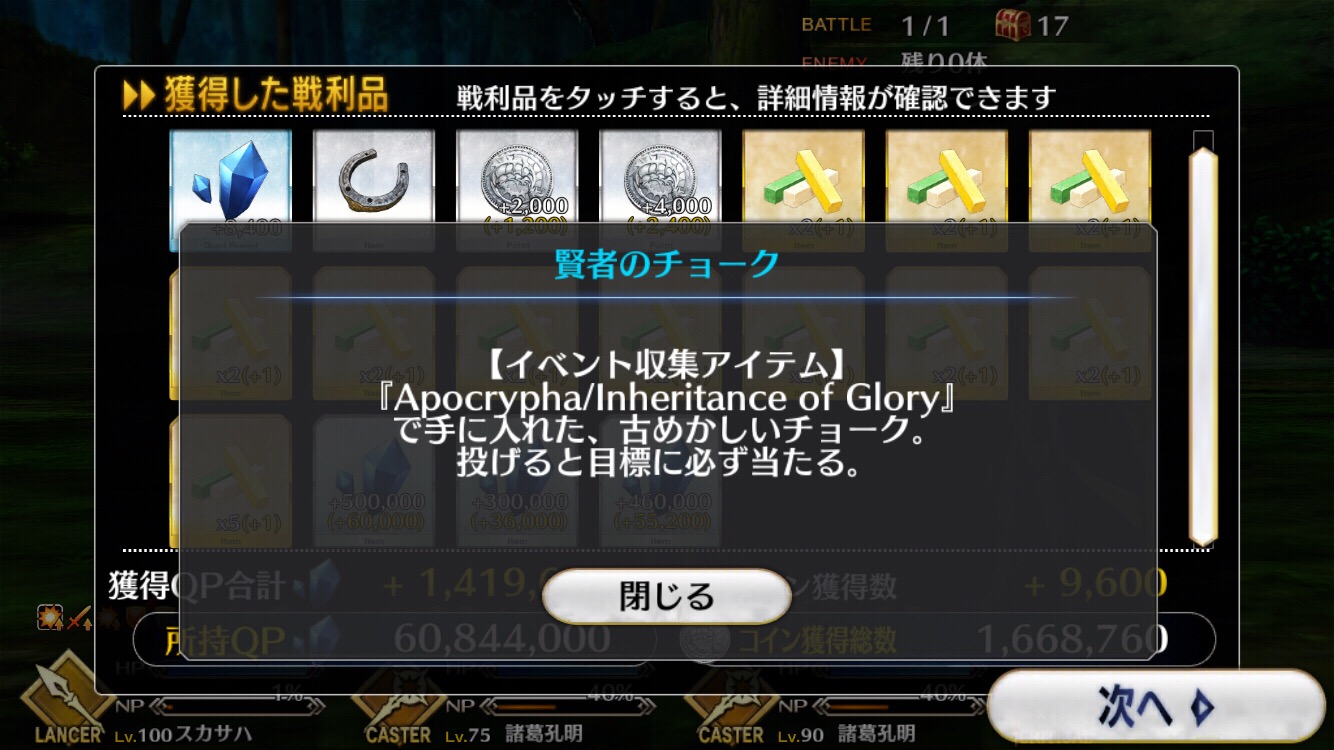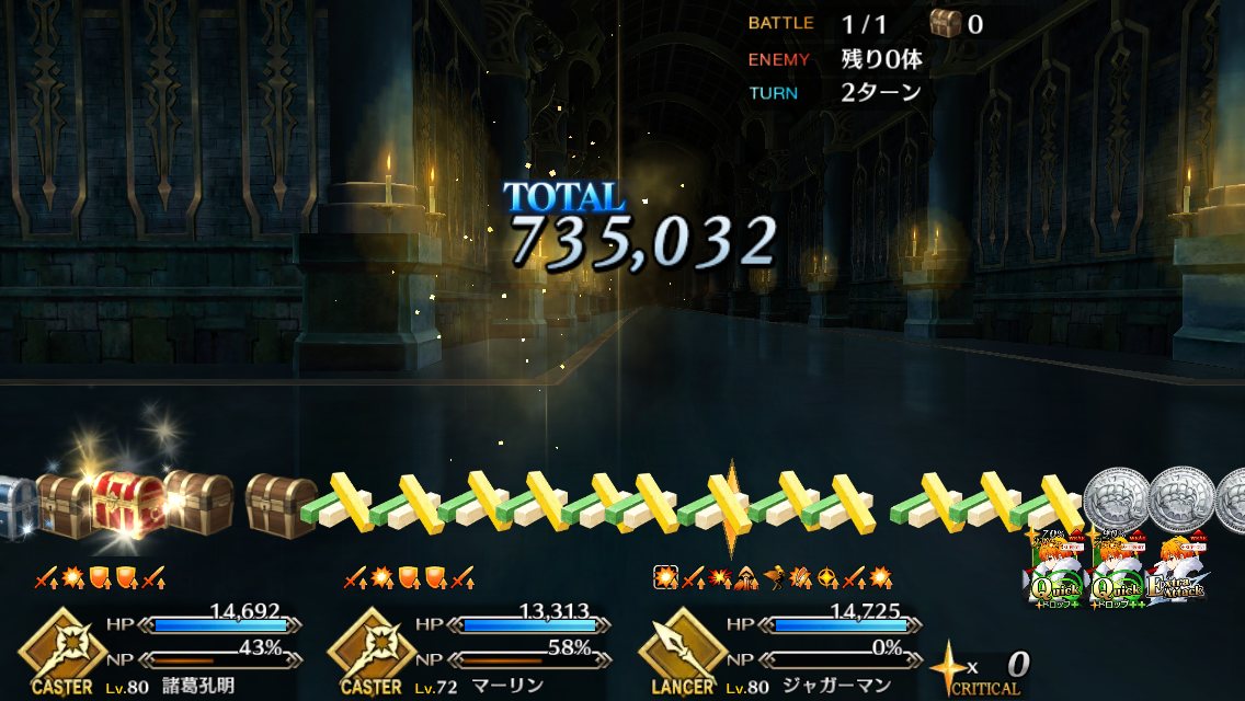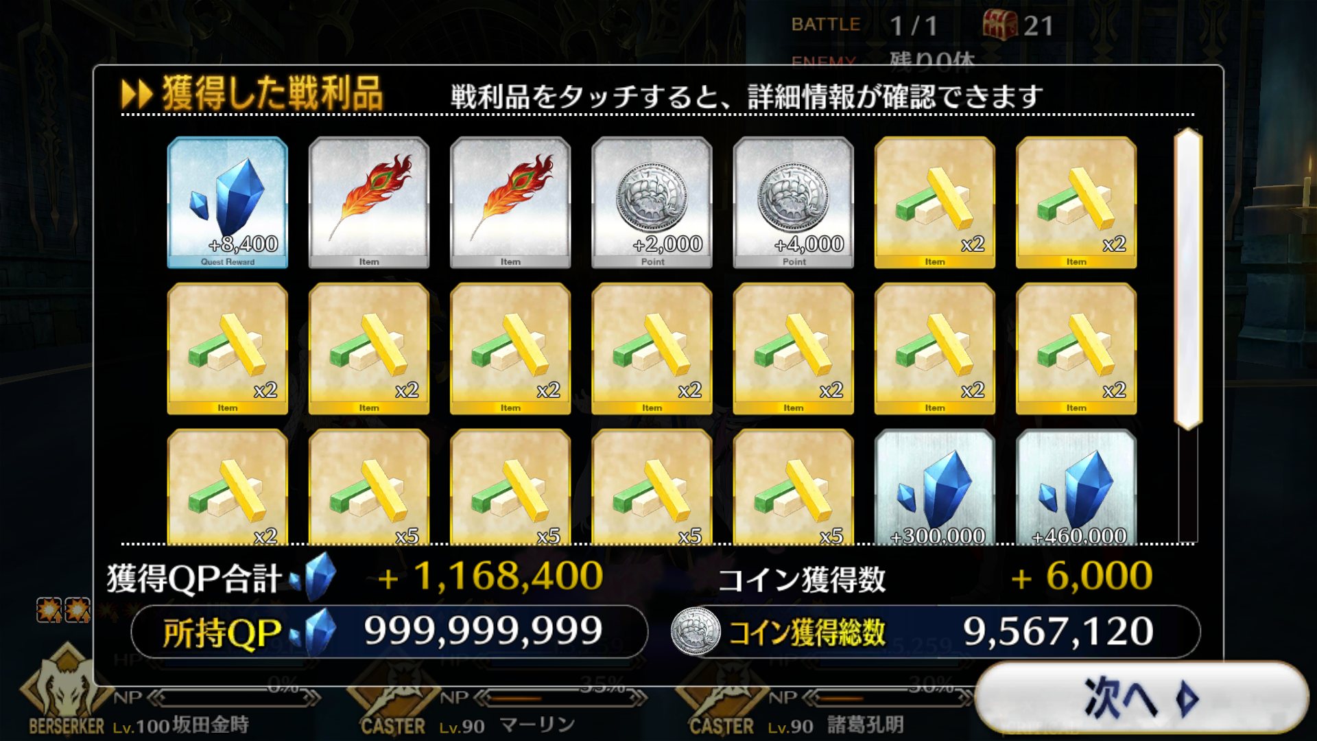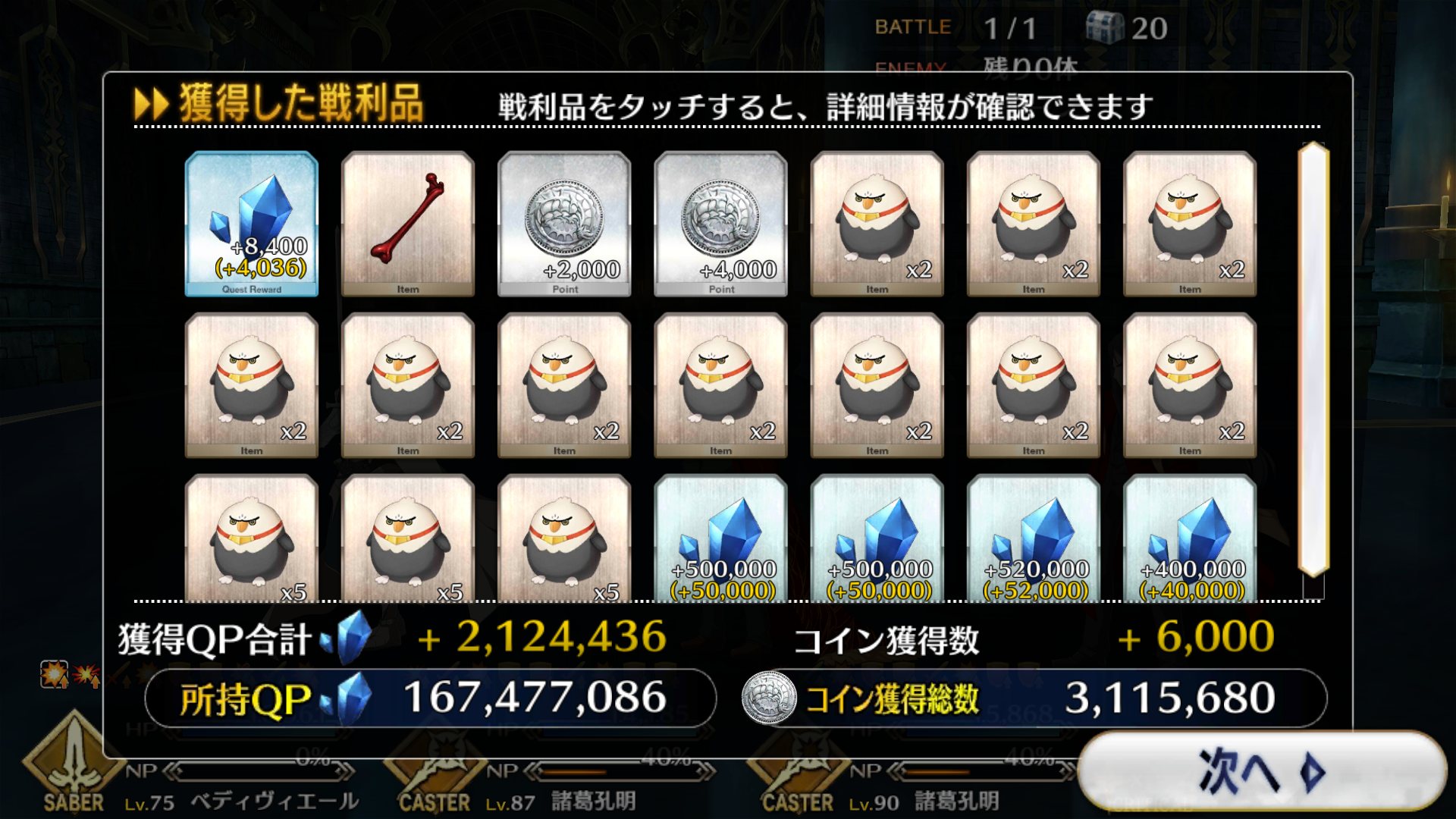 今回でQPはインフレするからこれが終わったら素材集めのフリクエ地獄になる訳だ