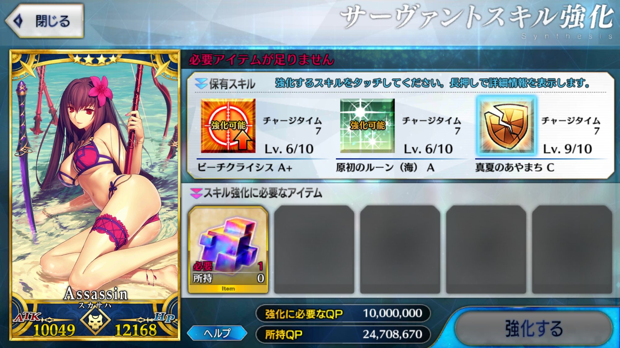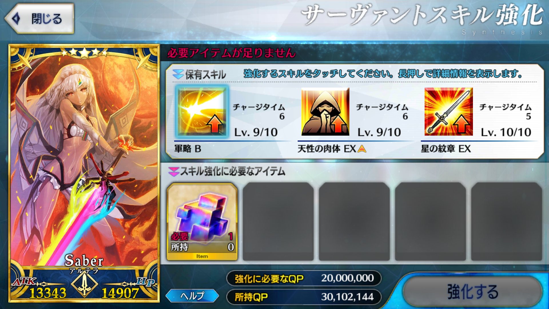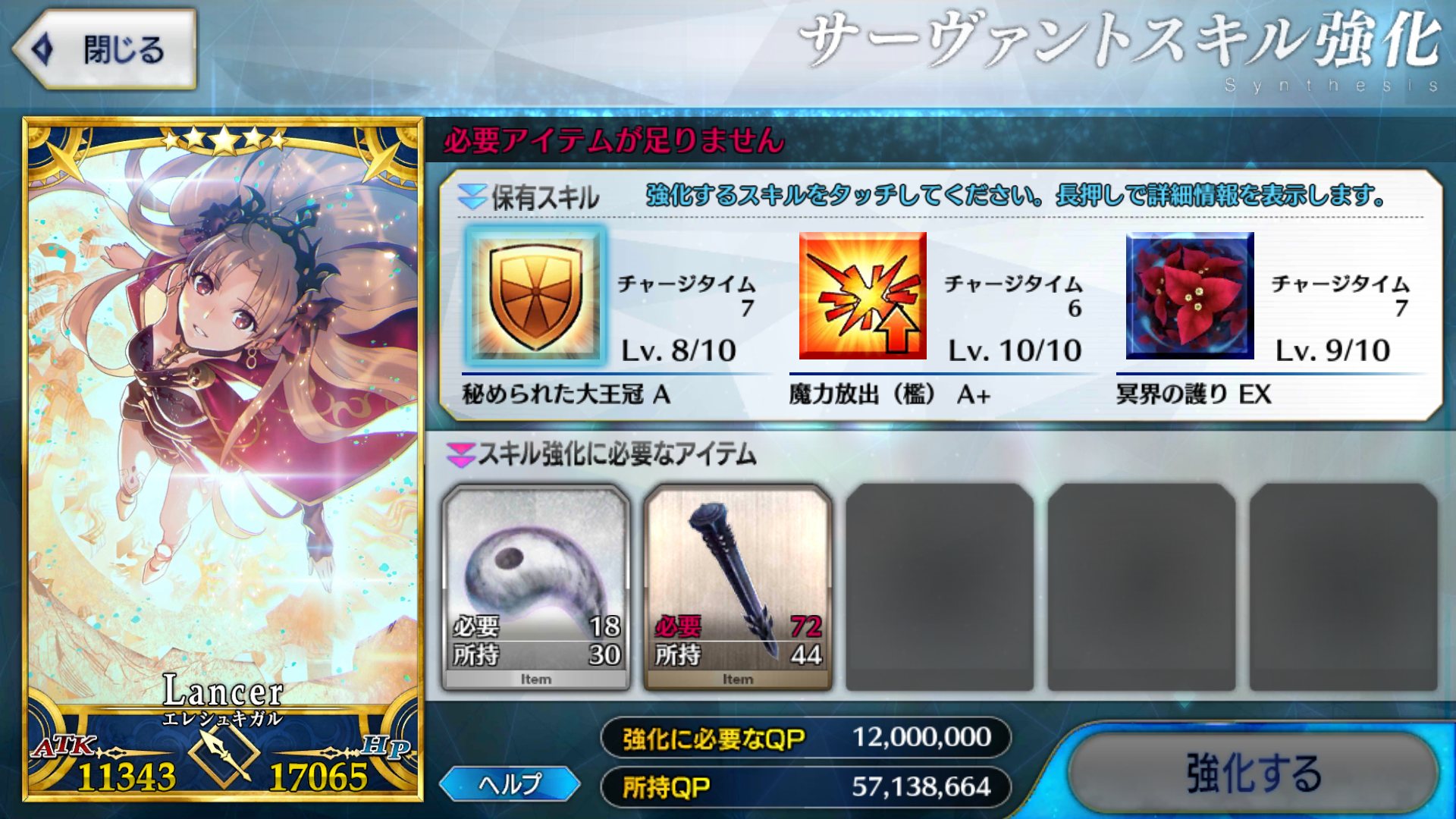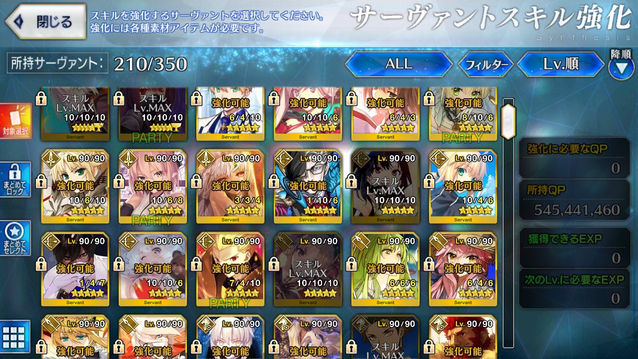 足りぬしかしここまでQPがあってもスキルレベル育成が完全に止まってしまったことを考えると、不足しているアイテムが今すぐ欲しくなって来る。