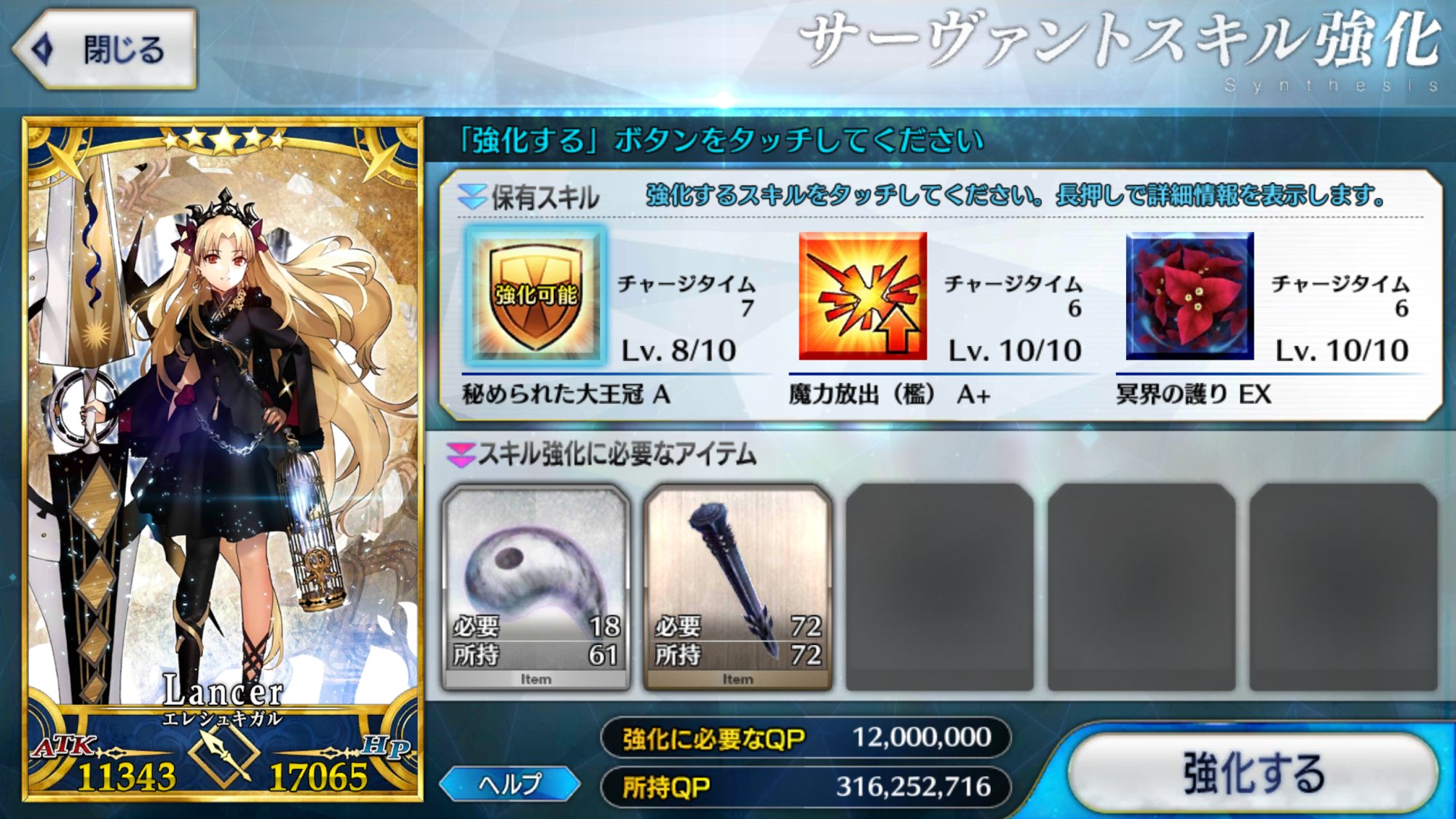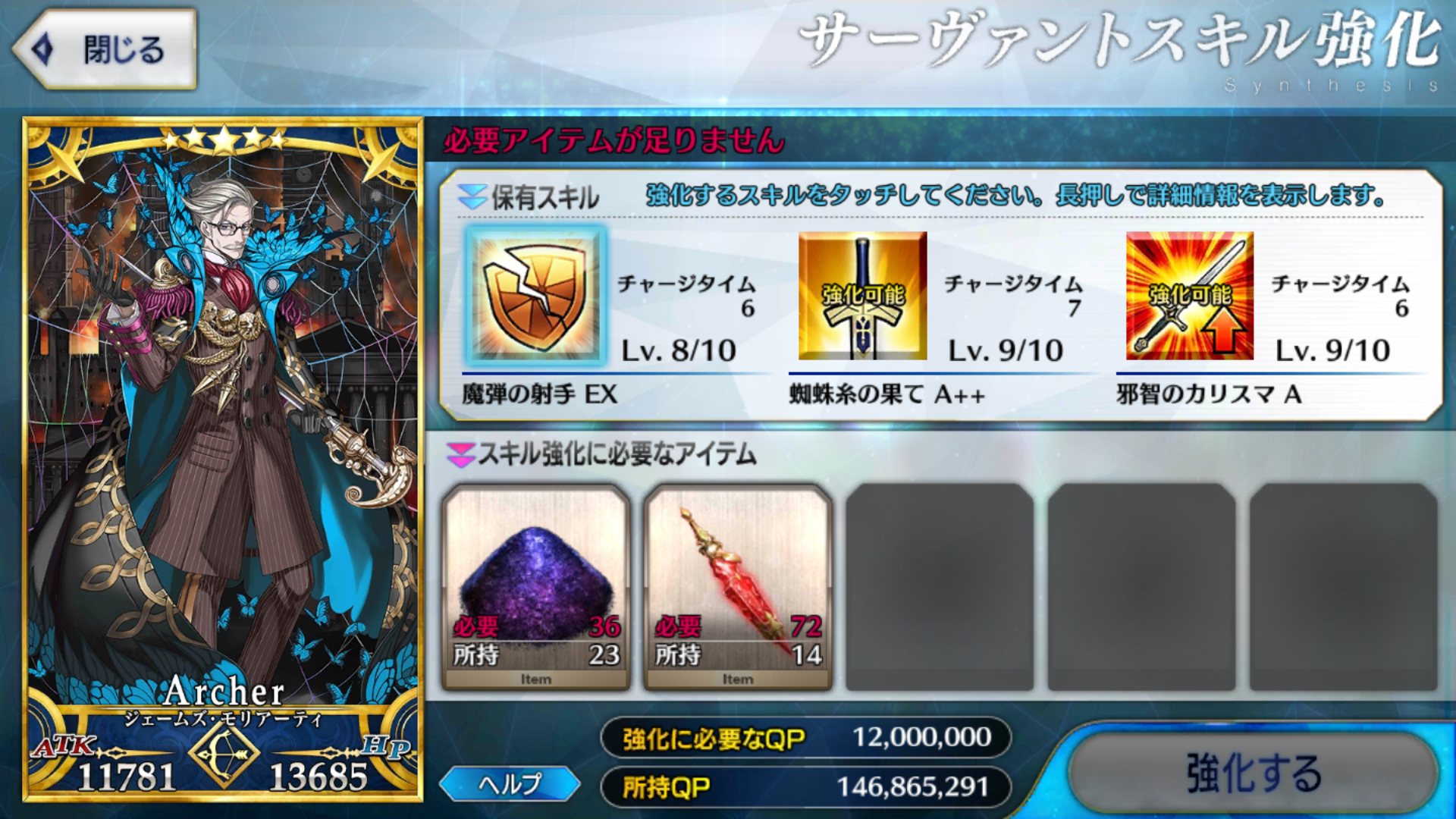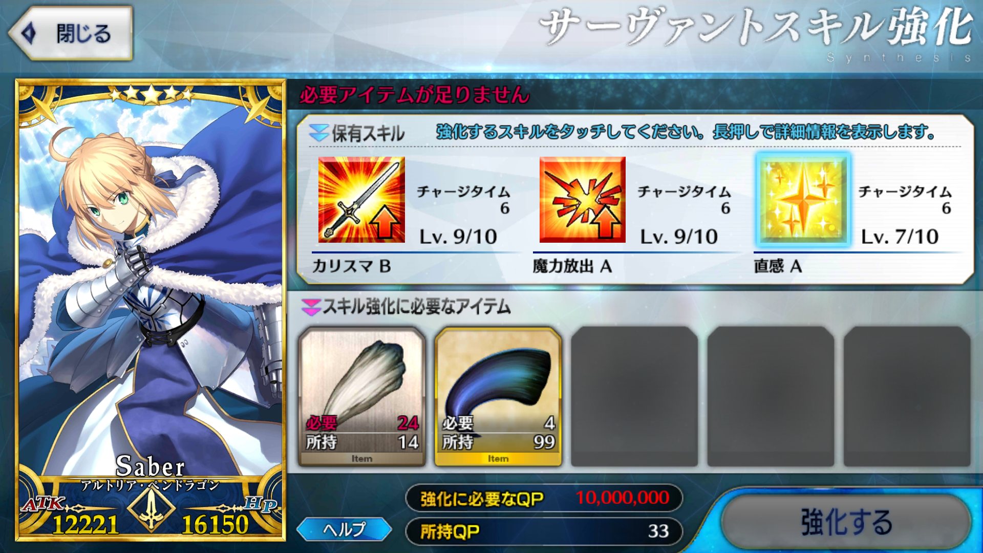 足りぬしかしここまでQPがあってもスキルレベル育成が完全に止まってしまったことを考えると、不足しているアイテムが今すぐ欲しくなって来る。
