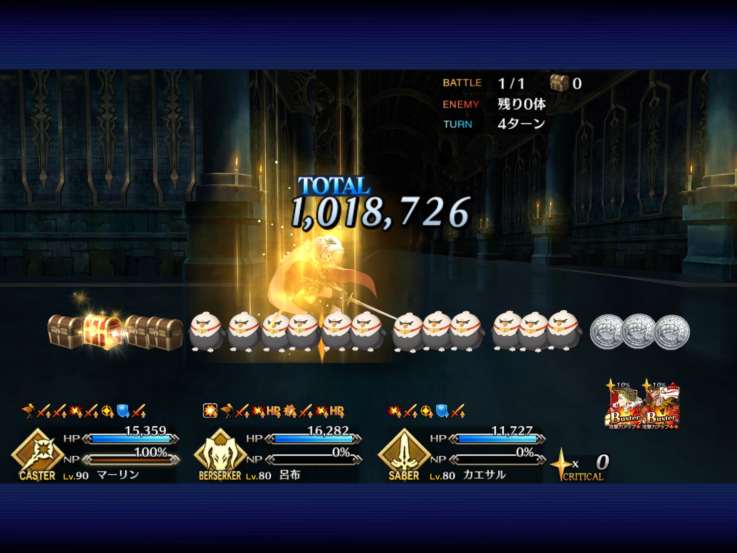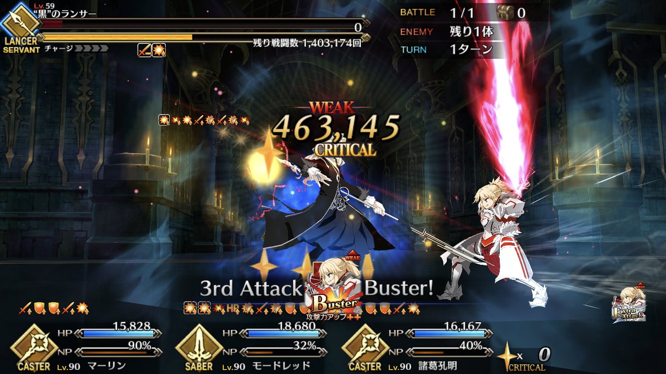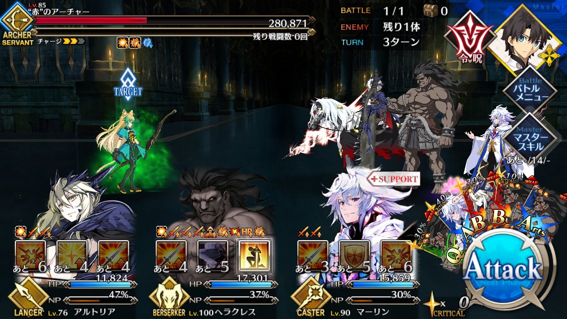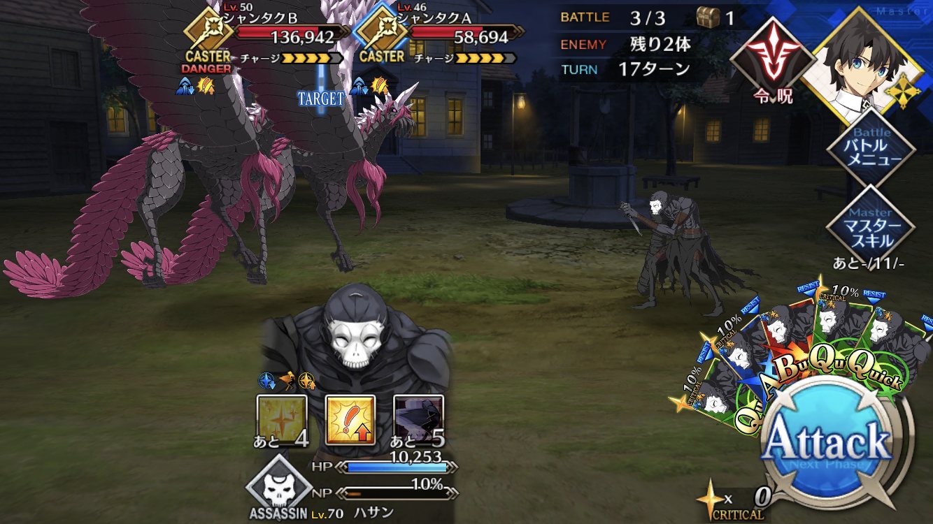 ウチはフツーに三蔵ちゃんの宝具で本体の、その後のチェインで再現体だなあしまった、全体宝具か!