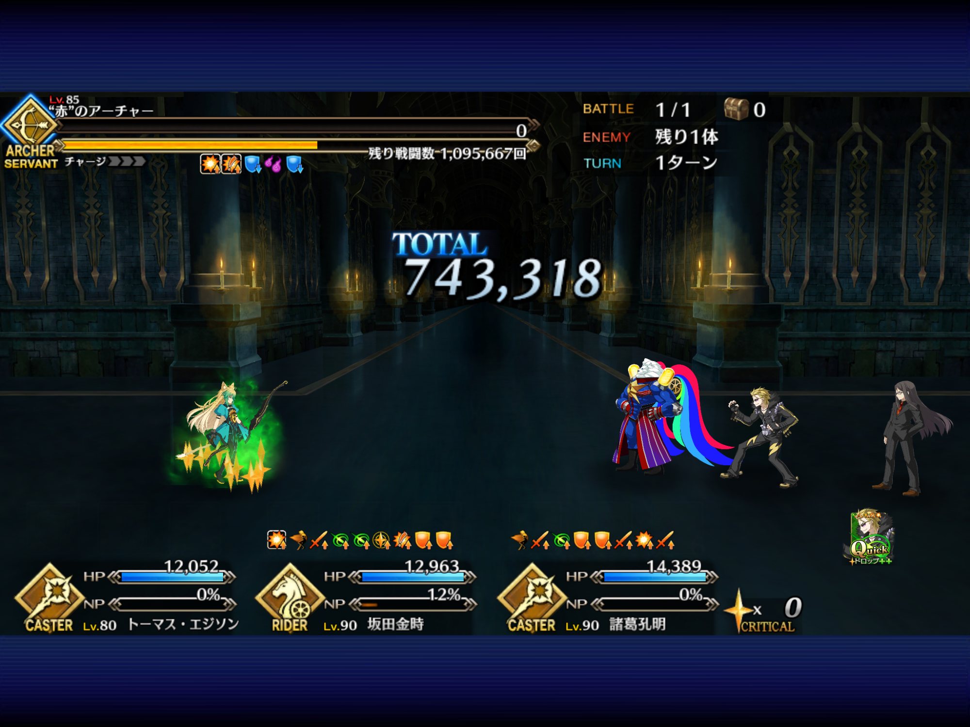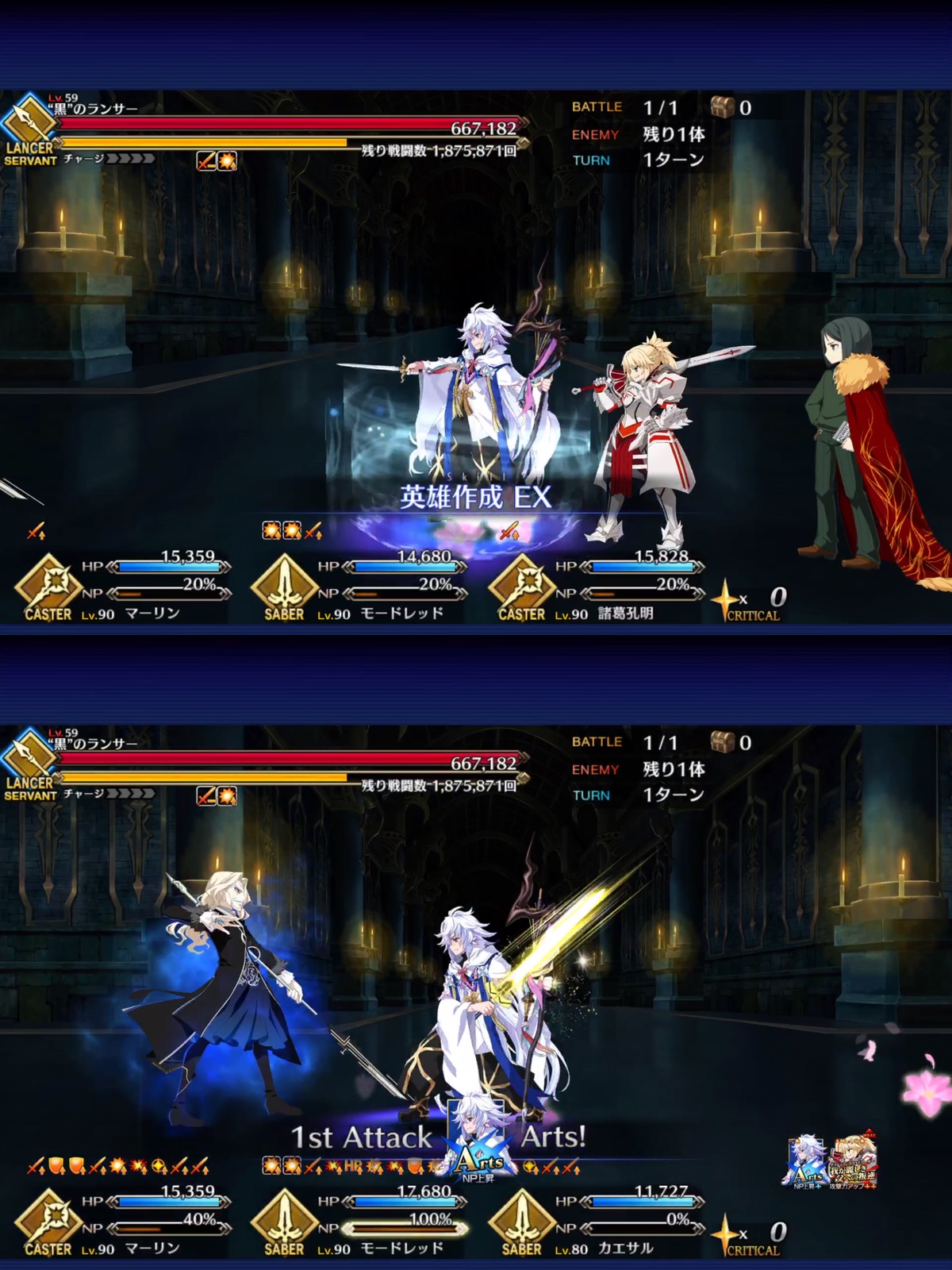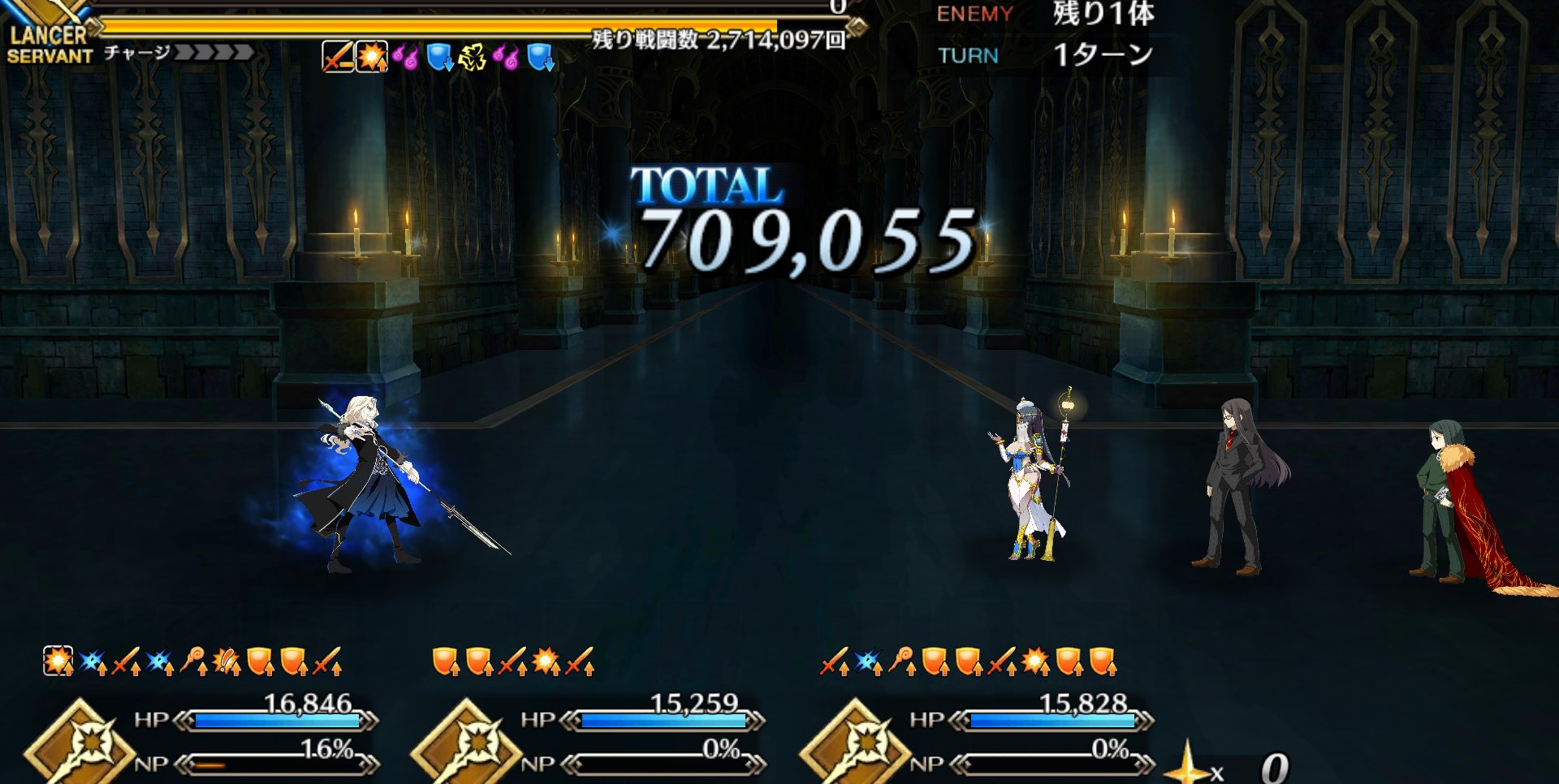 ウチはフツーに三蔵ちゃんの宝具で本体の、その後のチェインで再現体だなあしまった、全体宝具か!