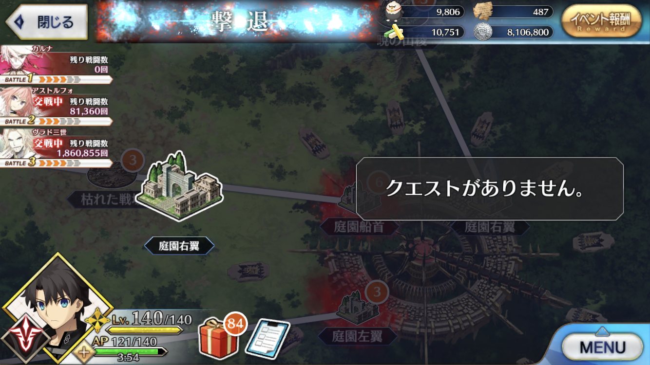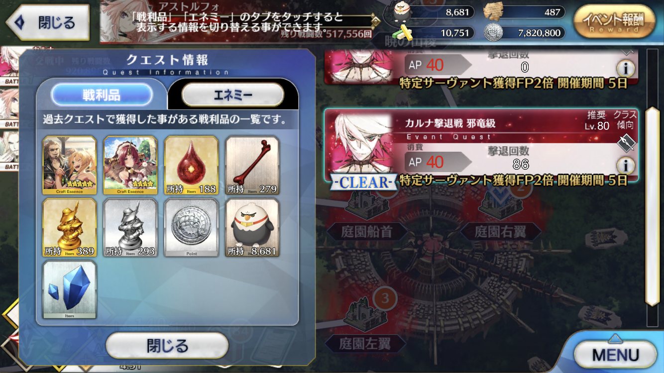 現実はカルナさん総攻撃からのアタランテ出待ち状態になりつつある・・・アストルフォが落ちるまで、出来るだけカルナさんから骨を奪っておくか