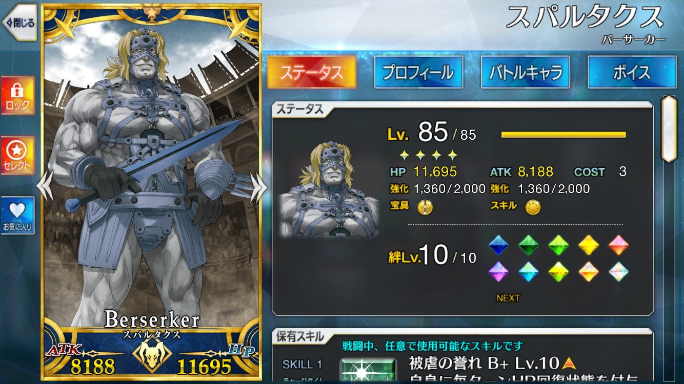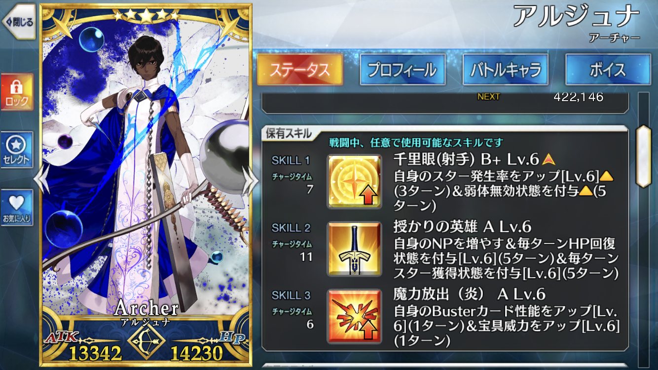 次は誰のスキル上げようかな朝に少しやって今見たらカルナまだ生きてたのか!