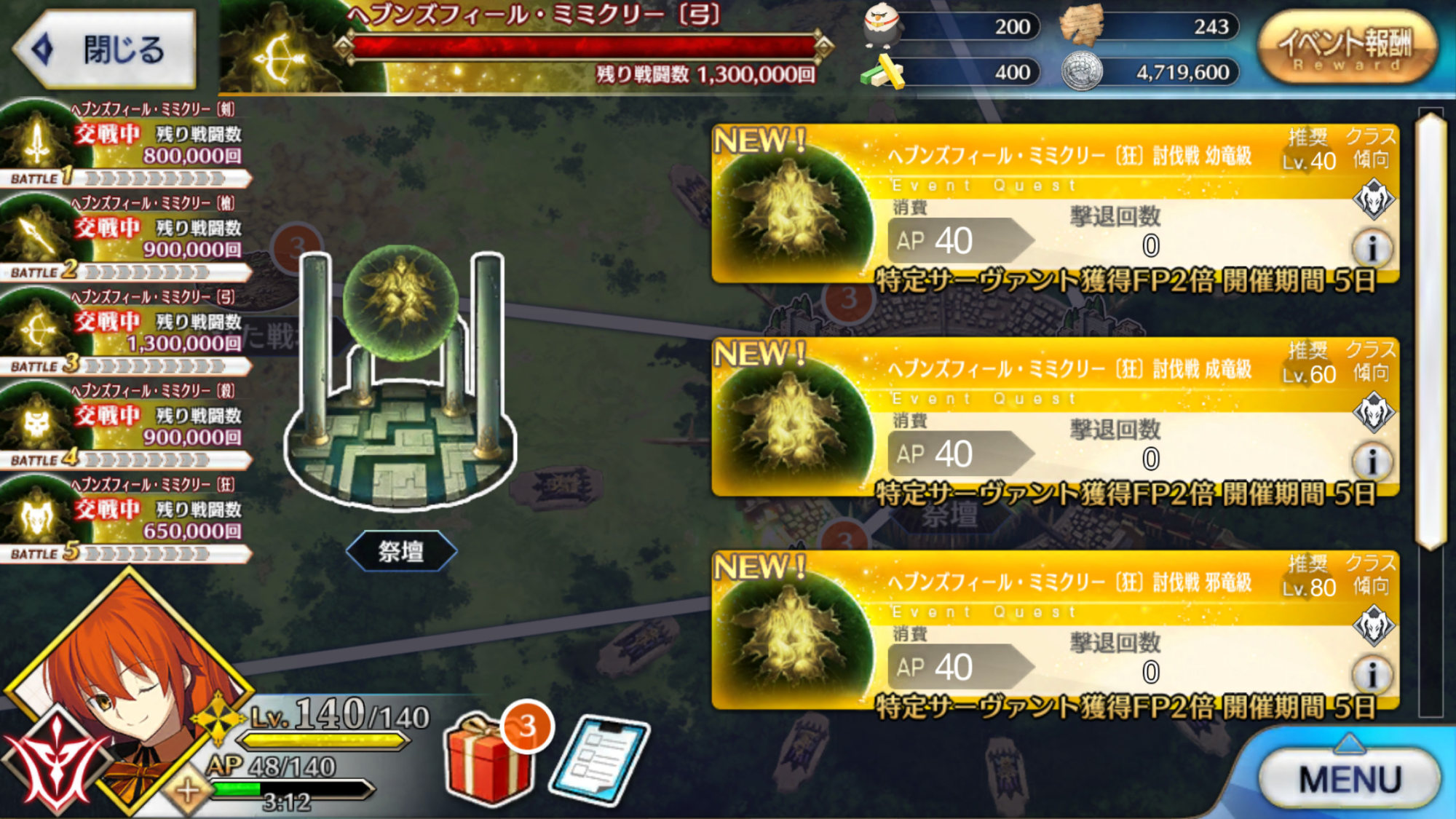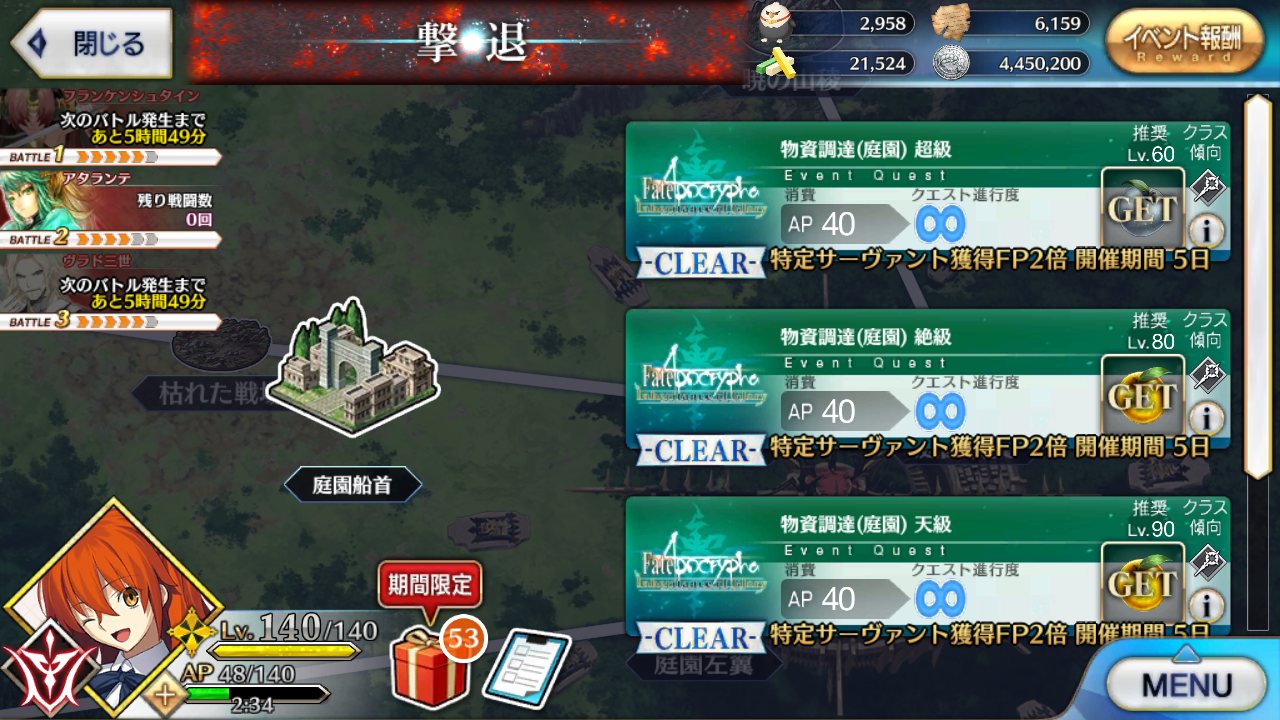つまり集めたい素材を持つ鯖のクラスに突撃じゃぁぁぁぁぁぁ!!!基本的に今までの撃退戦と同じ素材を落とすのね