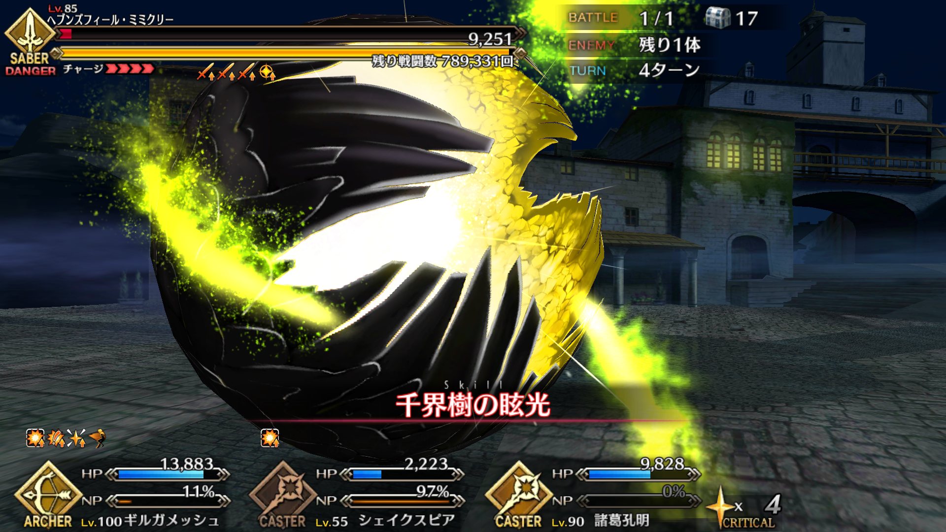 術ギル+クロで撃ち漏らすって人いたけど、こっちは80万近くダメージ出てるから漏れたことないなあ