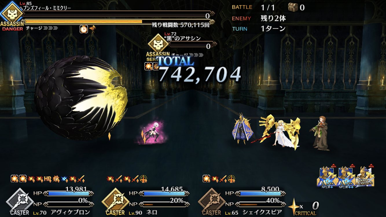 スキル上げたばかりのアナスタシアでアサシン試してきたけど火力足りなかった……