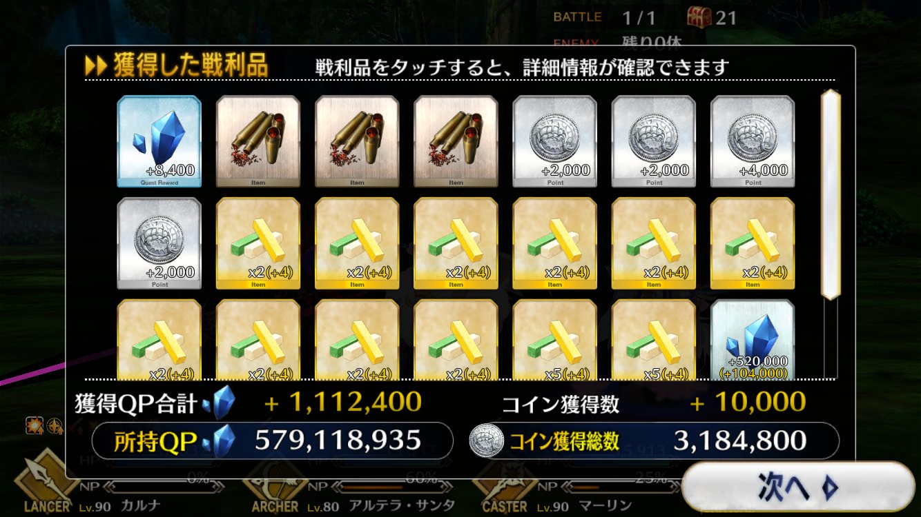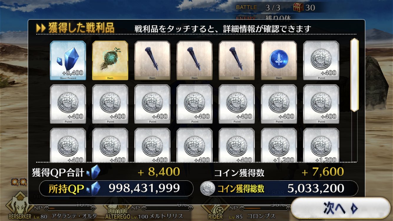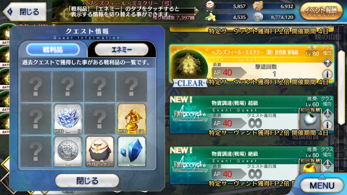 6日になったら終わるけどQP稼ぎのついでに素材狙いもできて結構個人的にはうまいって感想さすがに疲れたからゆっくりする