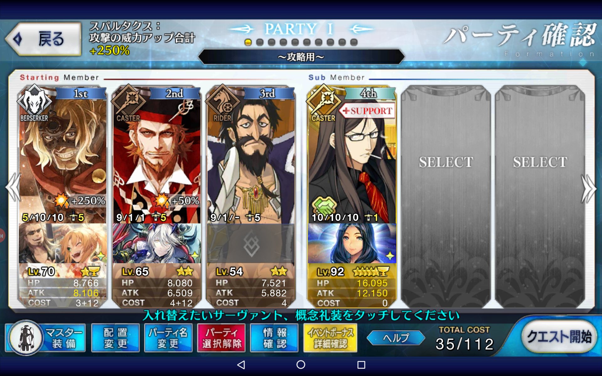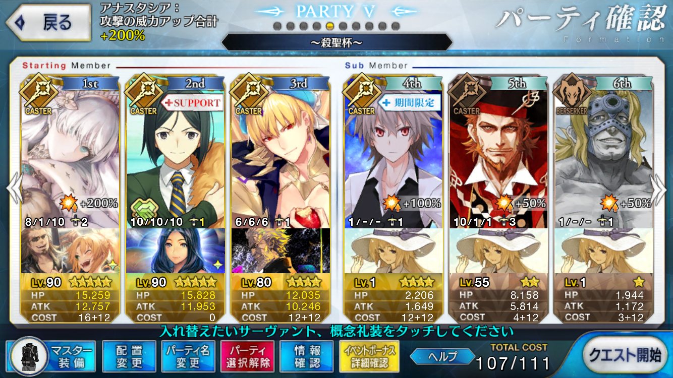 おれはもうQPカンストしちゃって討伐戦には加われないが、サポートに特攻礼装つけた全体宝具持ち置いとくから後よろしく!えっ、天草君に聖杯を壊させるって?