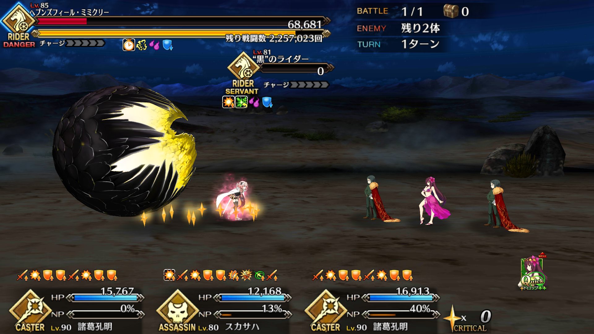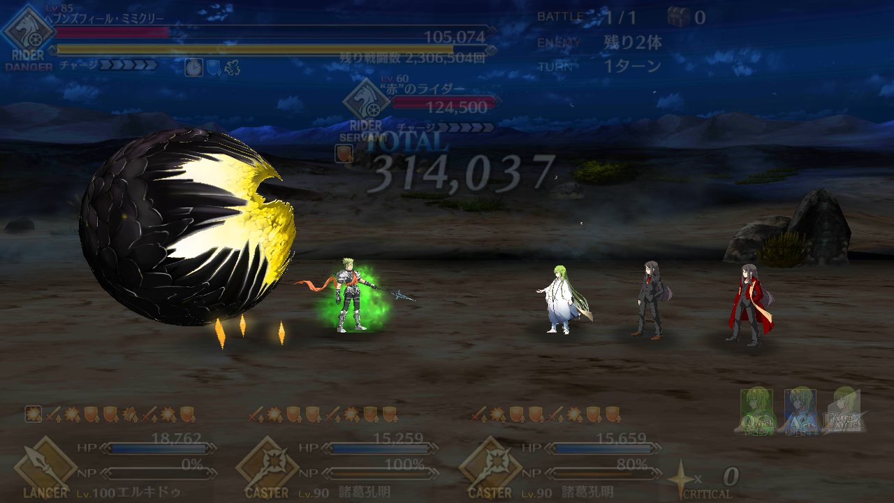 英知ヘブンズフィール極地礼装と各種ボーナス礼装固定だとライダーミミクリーの宝具ワンパン厳しいなー