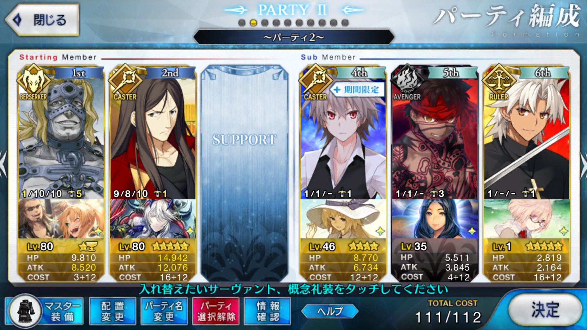 もう一人新規鯖が欲しいとこではあるが、さすがにきつそうか?殺は攻撃くらうと回避状態になるから