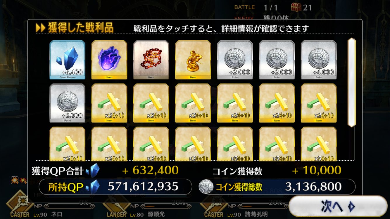 レイドはQP稼ぐついでに素材落ちるって程度、あと1ターンで終われるのが利点