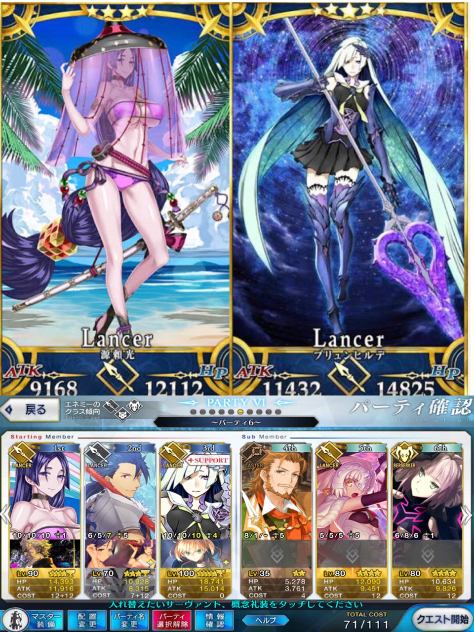 小次郎良いよね。自身のクリティカルによるダメージと星出し両方いけちゃう。惜しむらくは聖杯の残弾がないから提督さんみたいに100lvにできないということ>>14