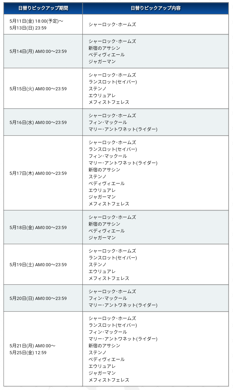 去年の男性ピックアップでベディ0、女性ピックアップでジャガーマン5枚引いた俺、実感がわかないモードレッド、セイバーリリィ、ランスロット、ベディ、新茶、えうえう、ロビン、エリちゃん、フィン、ジャガー、アストルフォ、マリー、エレナ、メッフィー、新アサ、ステンノ、ジキル&ハイド、源頼光、バニヤン、ホームズ