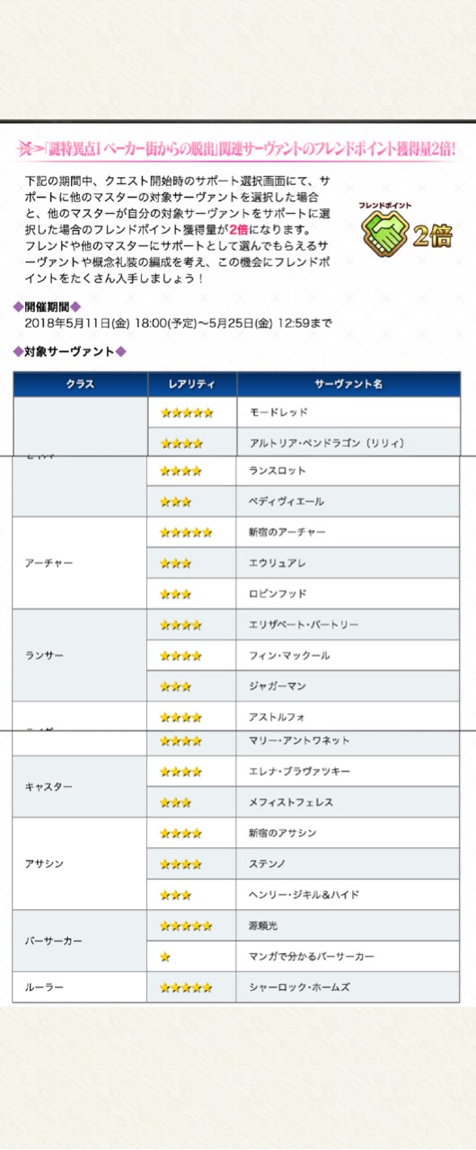 おや?ベーカー街のFP増加キャンペーン対象鯖に