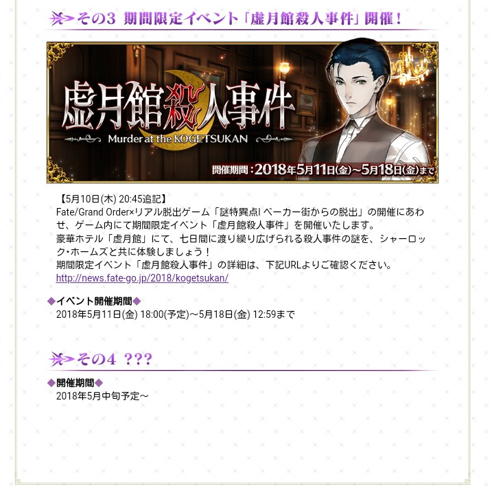 中旬にまだなんかあるっぽいからそれの前振りとも取れなくない、かな?そのためのホームズ