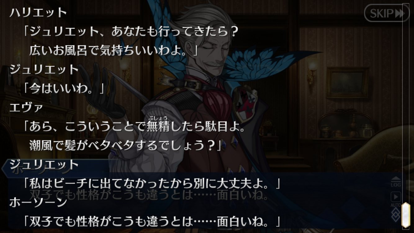 すでにウーさんとかすごいチャイニーズっぽい方いるしね…まだ事件自体起きてないので推理も何もあったものじゃないが、とりあえずジュリエット(ステンノ様)との関係になんかドキドキした