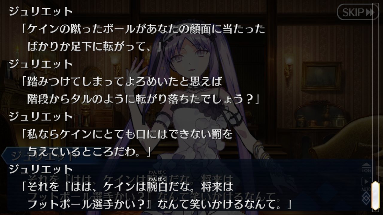これにかぎらず、ジュリエットの視点主に対する態度は端々に愛情が感じられる気がするんだよね